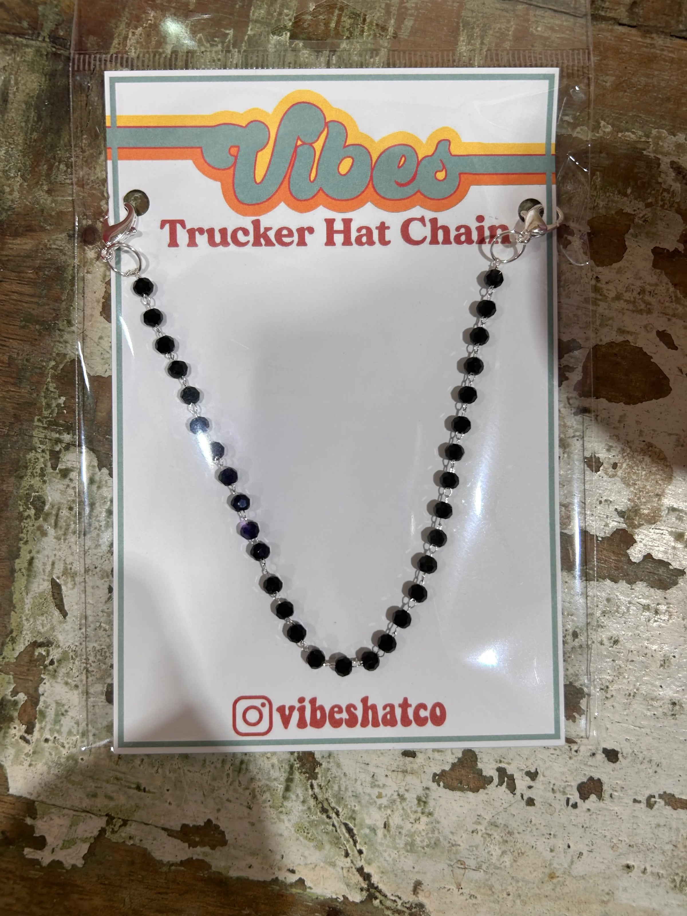 This dainty black beaded trucker hat chain is the perfect addition for a simple trucker hat! All Vibes Hat Company trucker hat chains come with lobster claw clasps at each end so they can easily be moved from cap to cap.