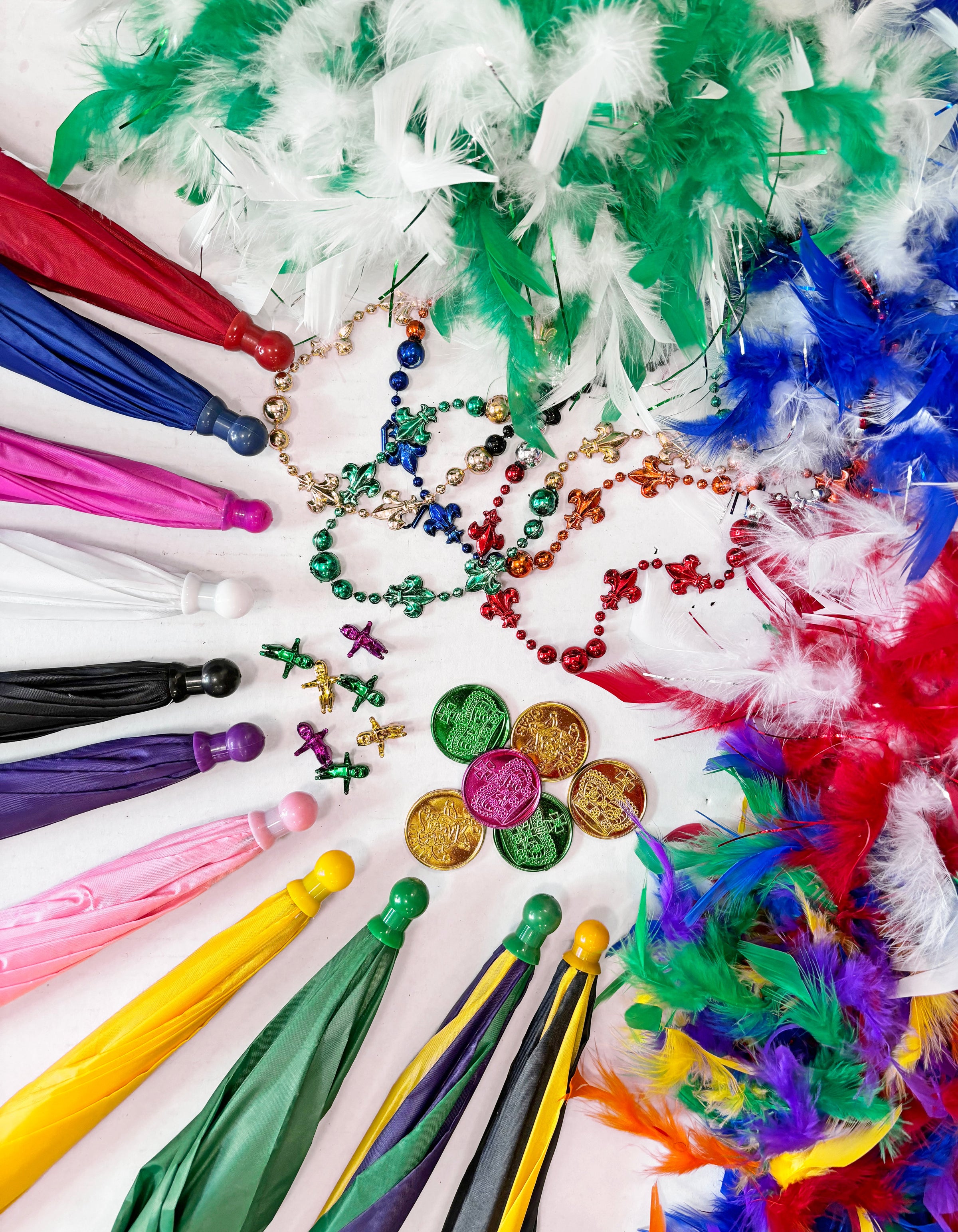 - A small packet with matching embellishments (please leave a note at checkout if you have a preferred embellishment, e.g. fleur de lis, king cake babies, or doubloons, otherwise a variety will be sent.