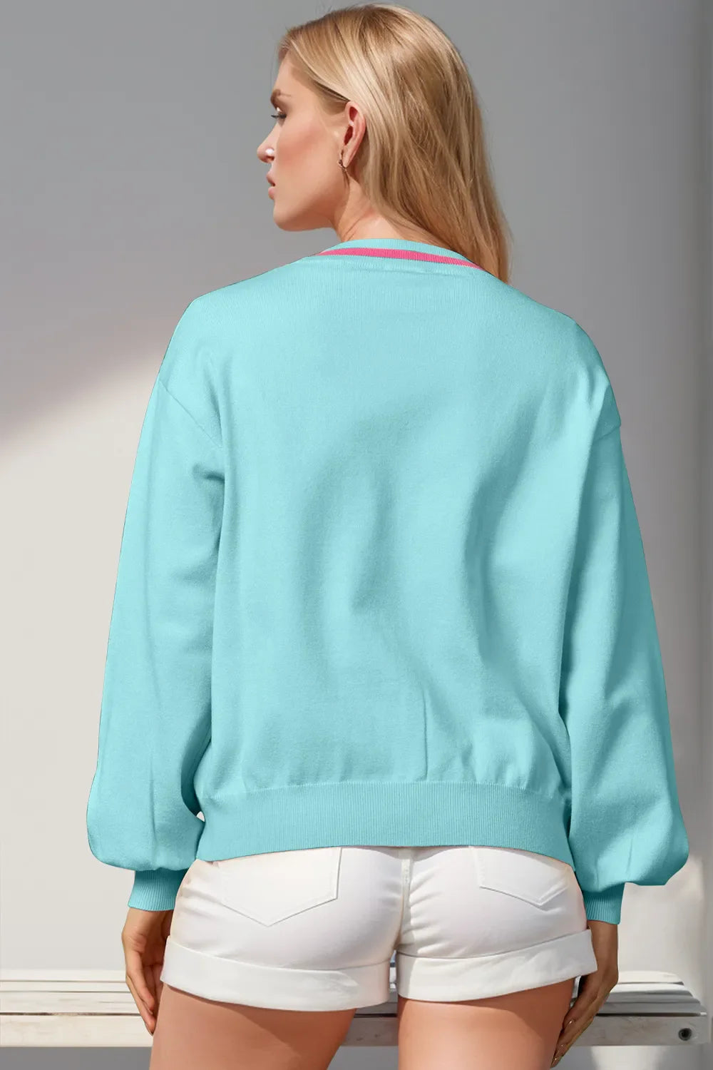 Double Take Full Size Nutcracker Sequin Bow Decor Cardigan