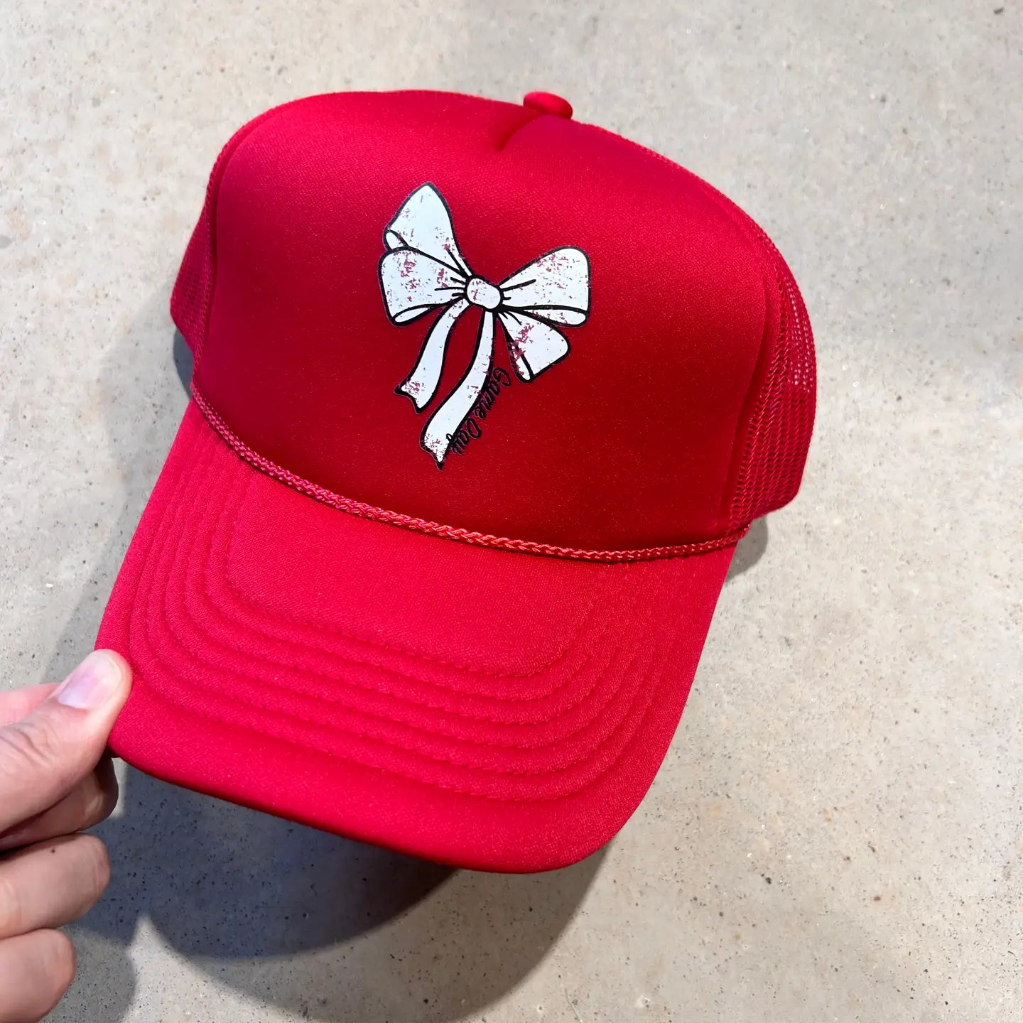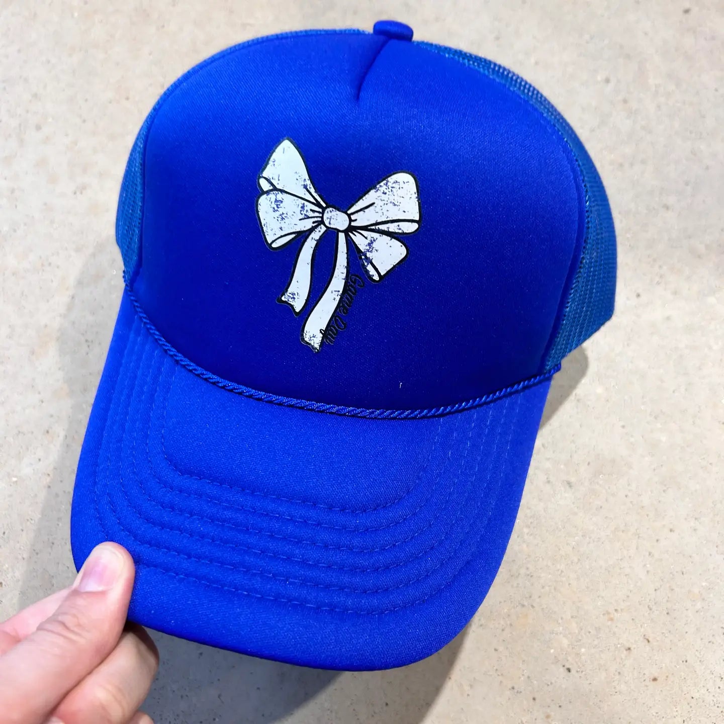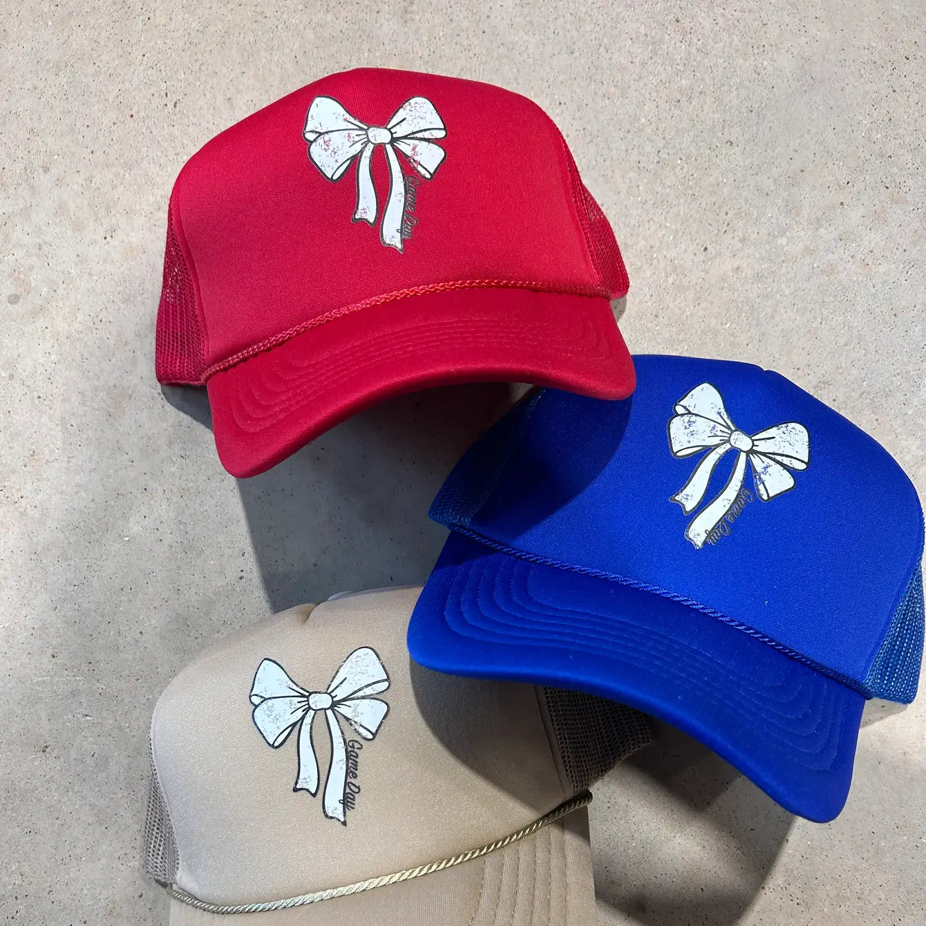 Rep your colors for any sport with this super cute Game Day Bow trucker hat! Available on all your favorite colors! Don't see your school spirit colors here? Shoot us a message to order yours! Foam truckers have a foam front, mesh back, and adjustable snapback enclosure.