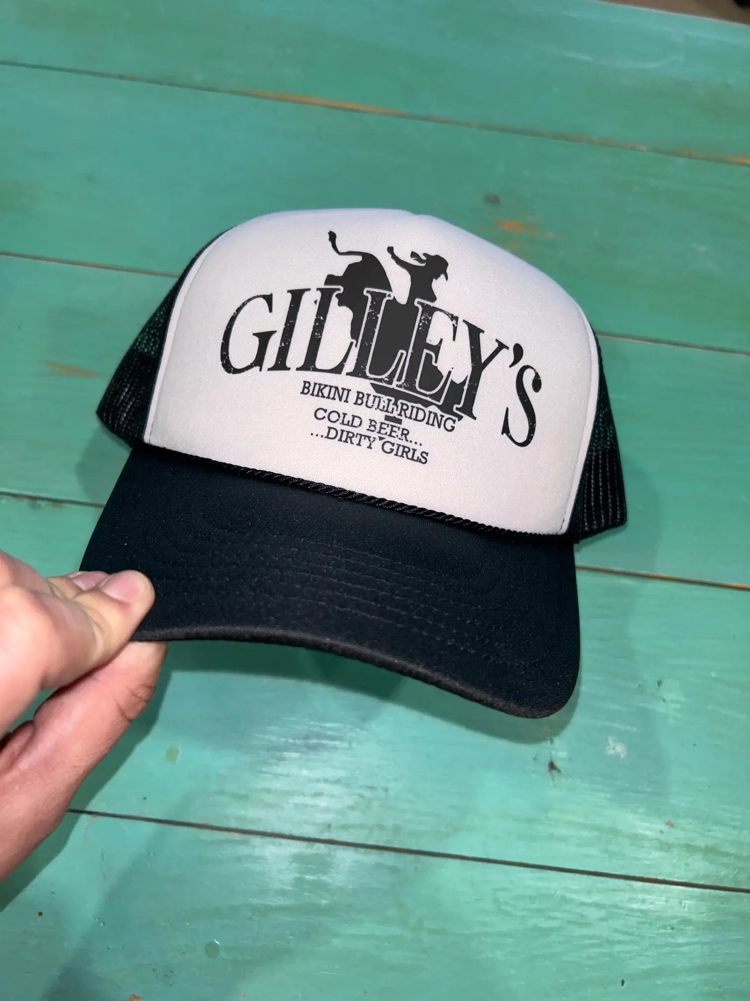 Gilley's Bikini Bull Riding design screen printed on your favorite trucker hat! Adjustable snapback enclosure. Your only spot for Officially Licensed Gilley's Merchandise!!