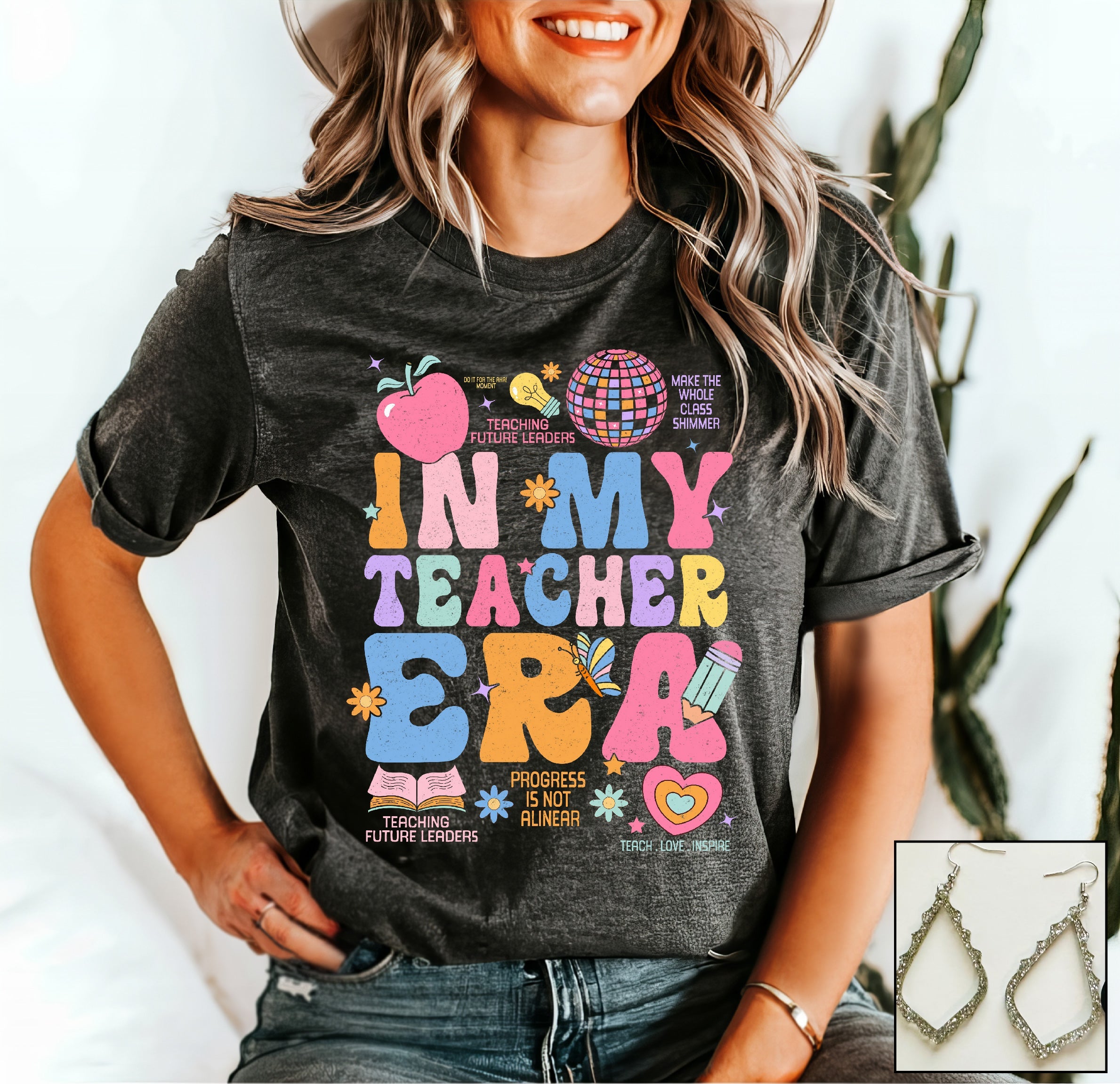This tee pairs perfectly with our Acrylic Silver Glitter Scalloped Dangle!