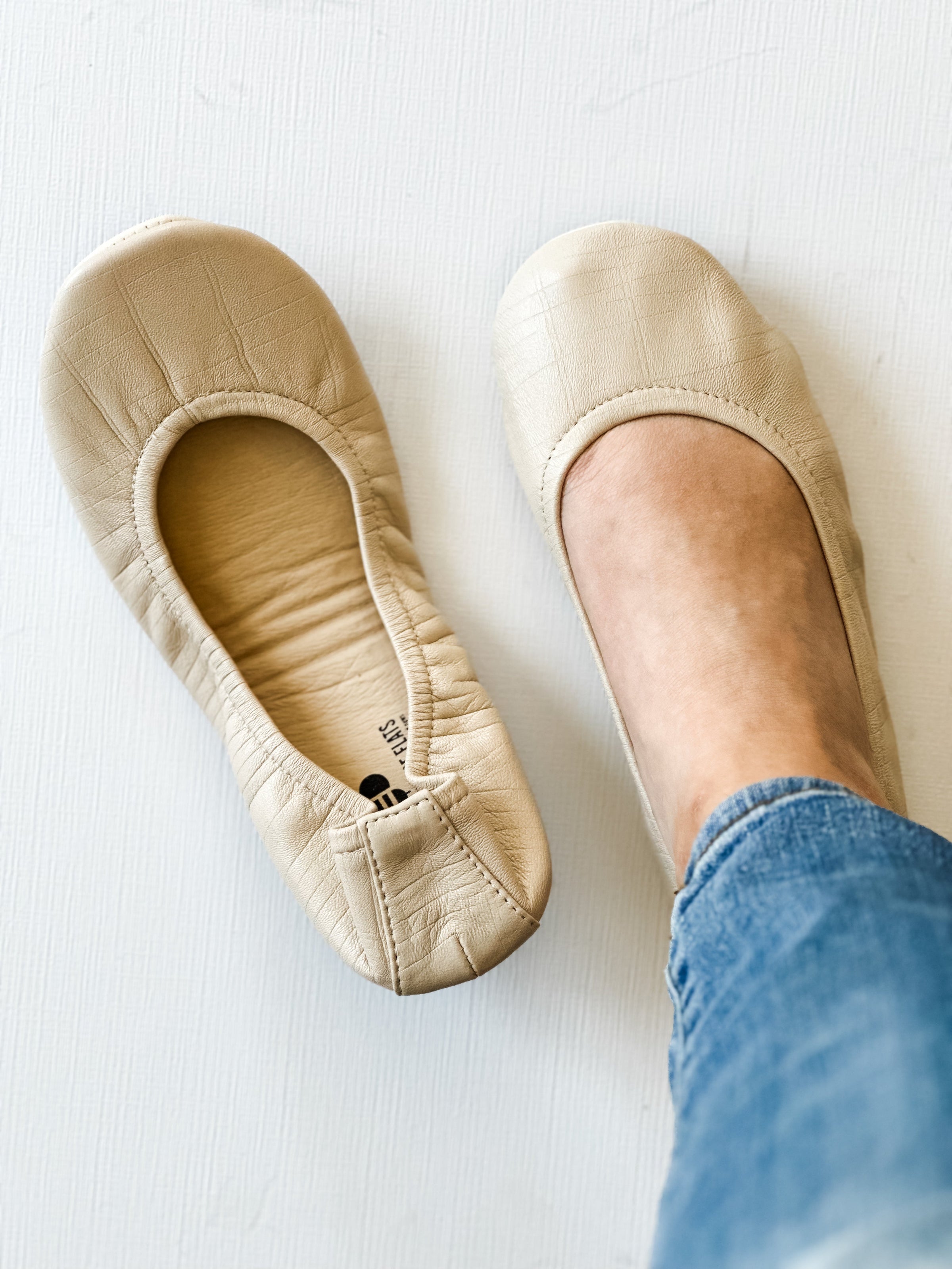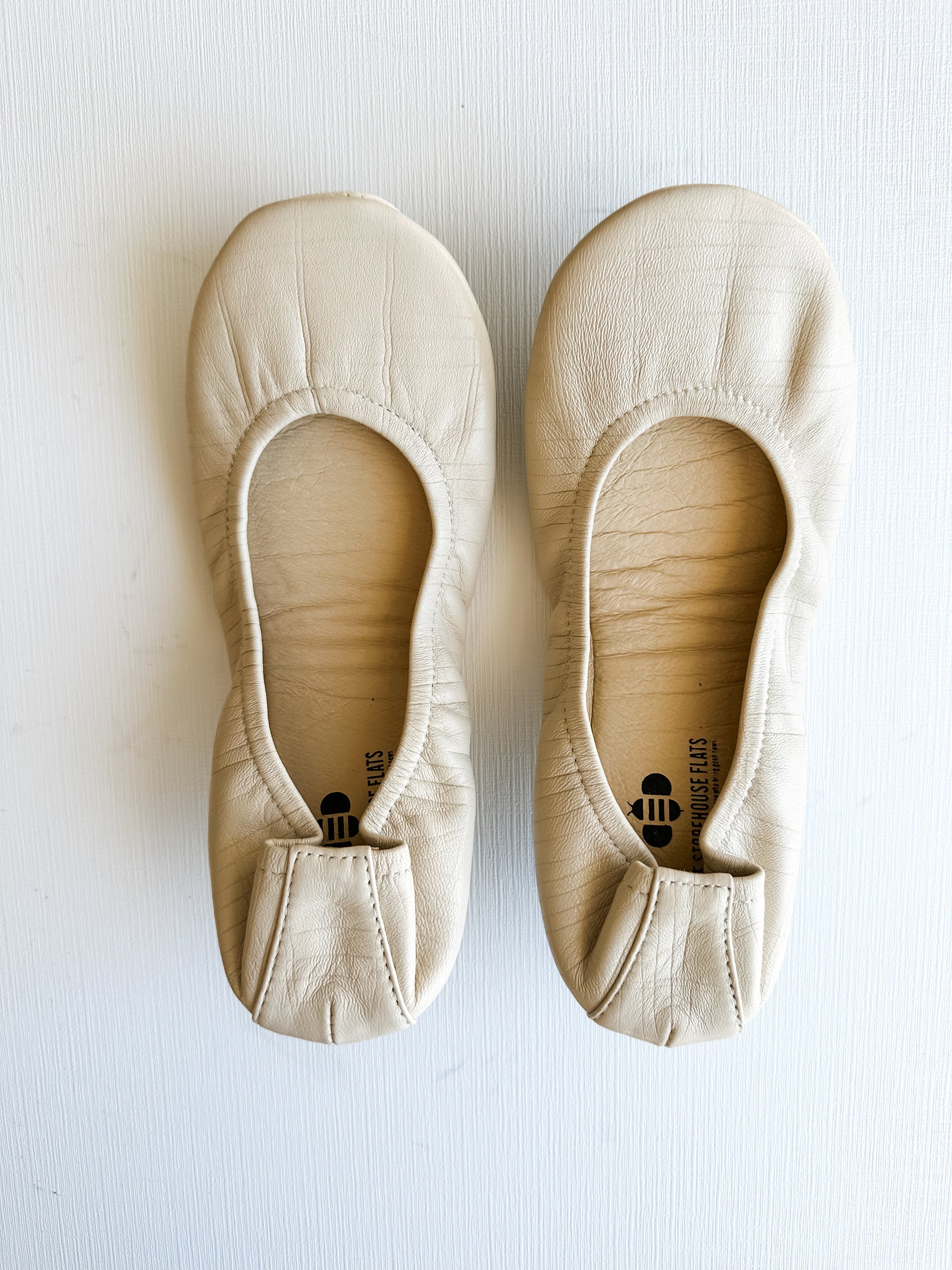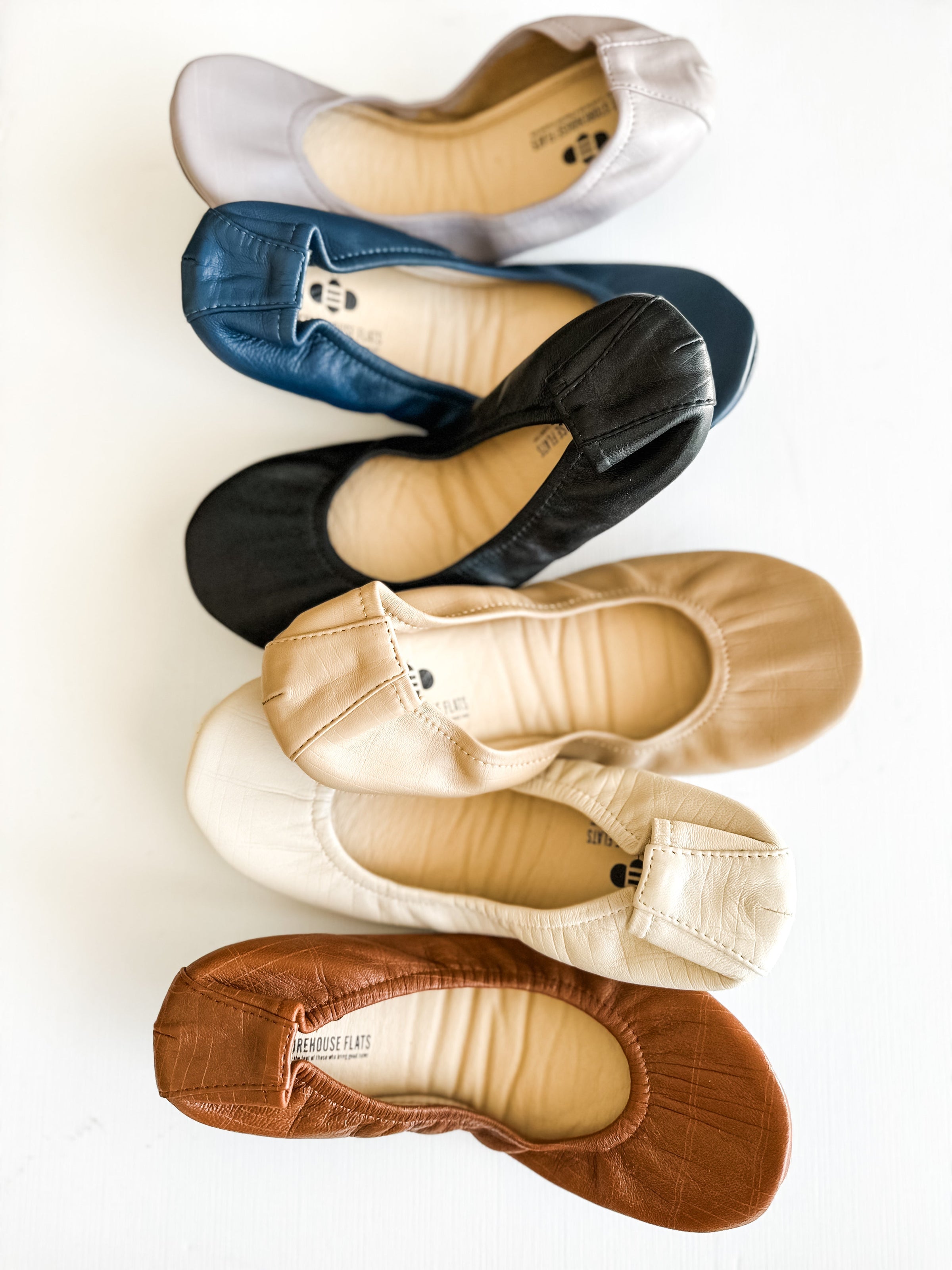 All of our The Storehouse Flats ballet flats feature a full coverage flexible sole! Comfort is our number one priority and this new sole checks that box. Not only is it comfy but the flats are foldable for easy travel and storage. The Storehouse Signature Collection is the softest leather we could find, with a slightly embossed texture.