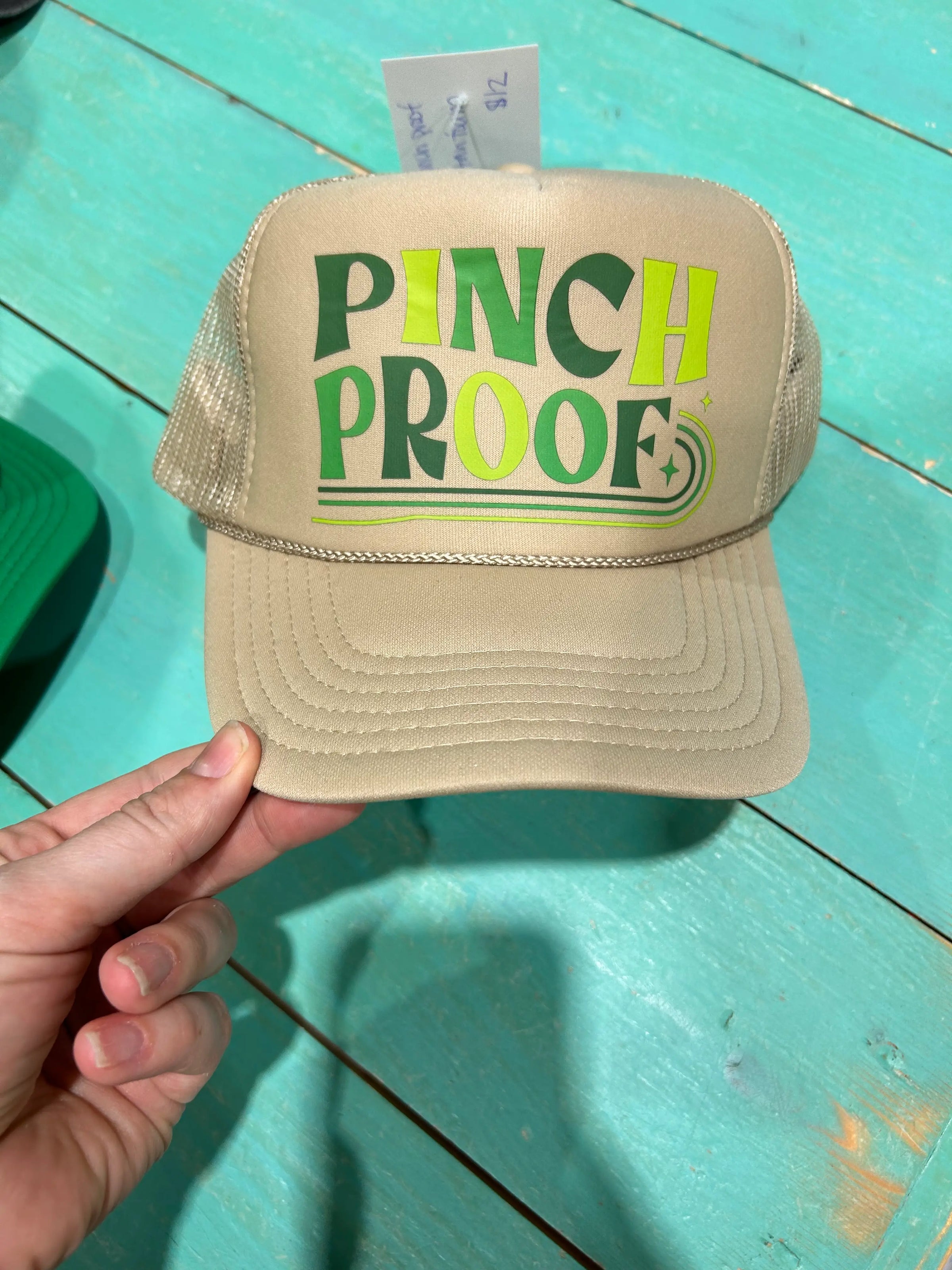 Pinch Proof design screen printed onto your favorite foam trucker hat. Truckers are foam front with a mesh back and an adjustable snapback enclosure. Also available on our Vibes Retro Rope hat too. Pair with a lucky St. Patty's day trucker hat chain for the perfect combo.