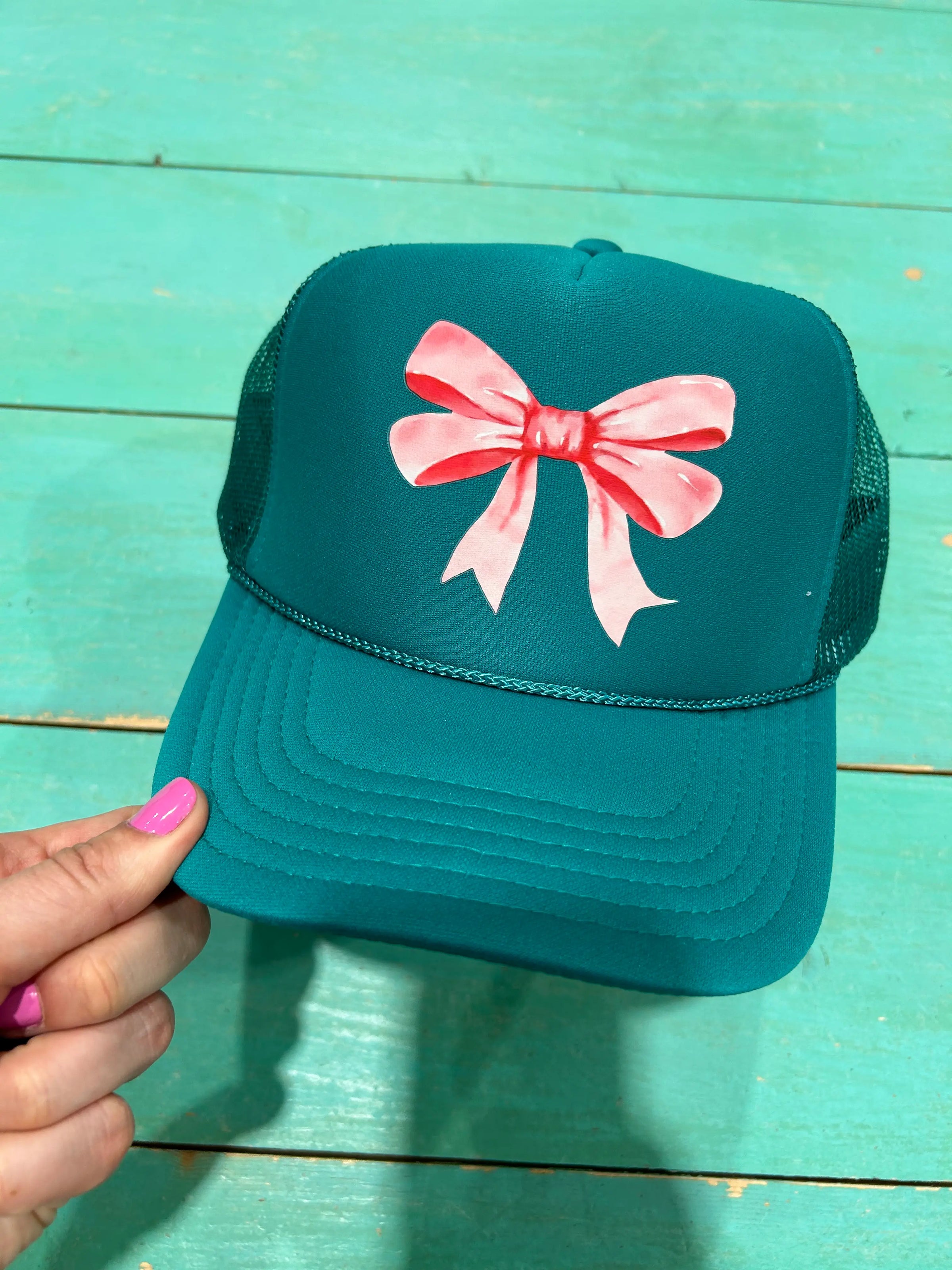 This watercolor pink bow foam trucker hat is everything!! This sweet pink bow is available printed on any of your favorite foam trucker hats or Vibes retro rope hats! All foam truckers have a foam front, mesh back, and an adjustable snapback enclousre. Vibes retro rope hats are lightweight nylon caps with a retro rope accent and adjustable snapback. Add one of our trucker hat chains and your hat is ready to go!