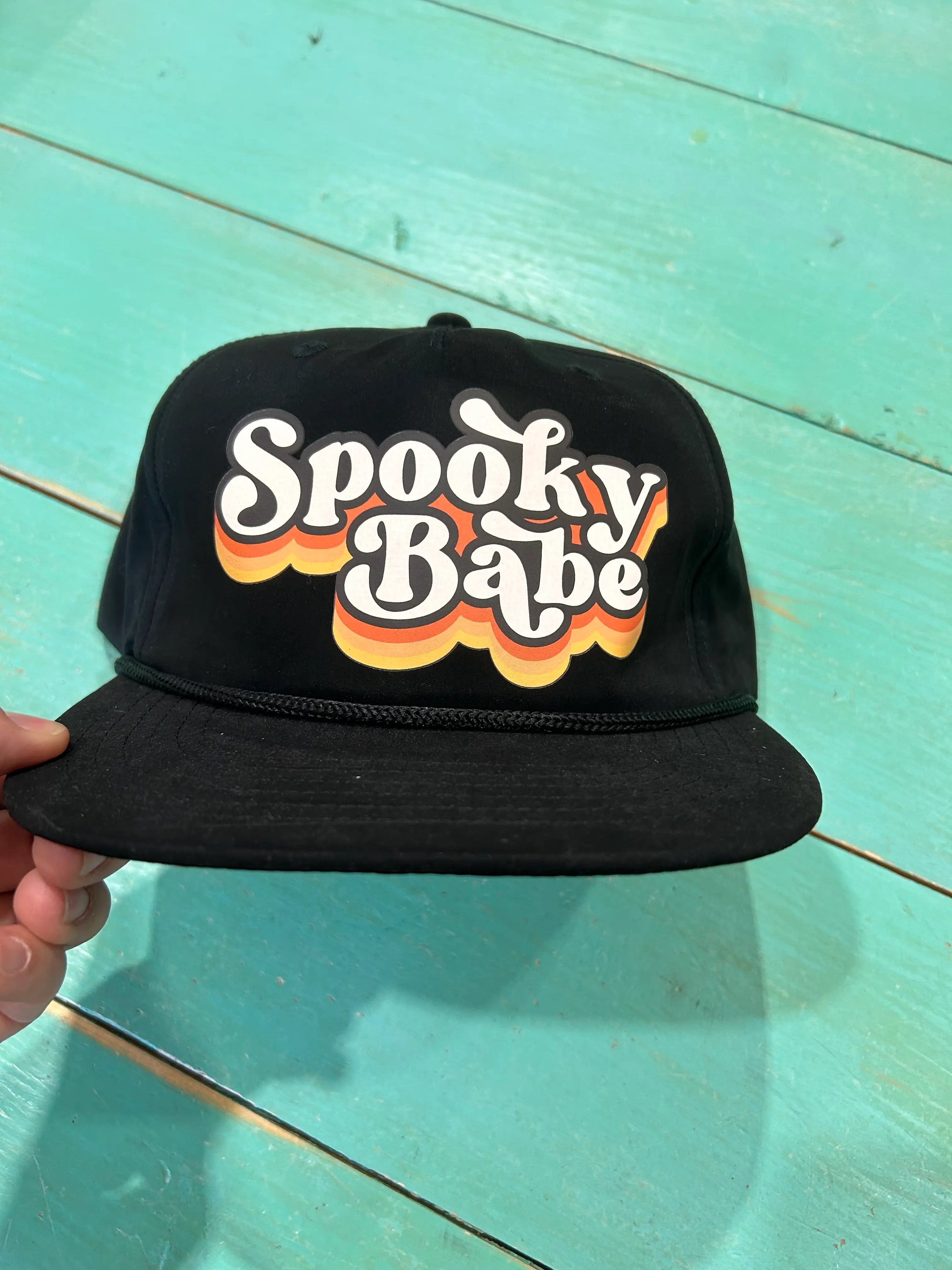 Retro inspired Spooky Mama design screen printed on your favorite trucker hat OR Vibes Retro Rope hat!! Both with an adjustable snapback enclosure.