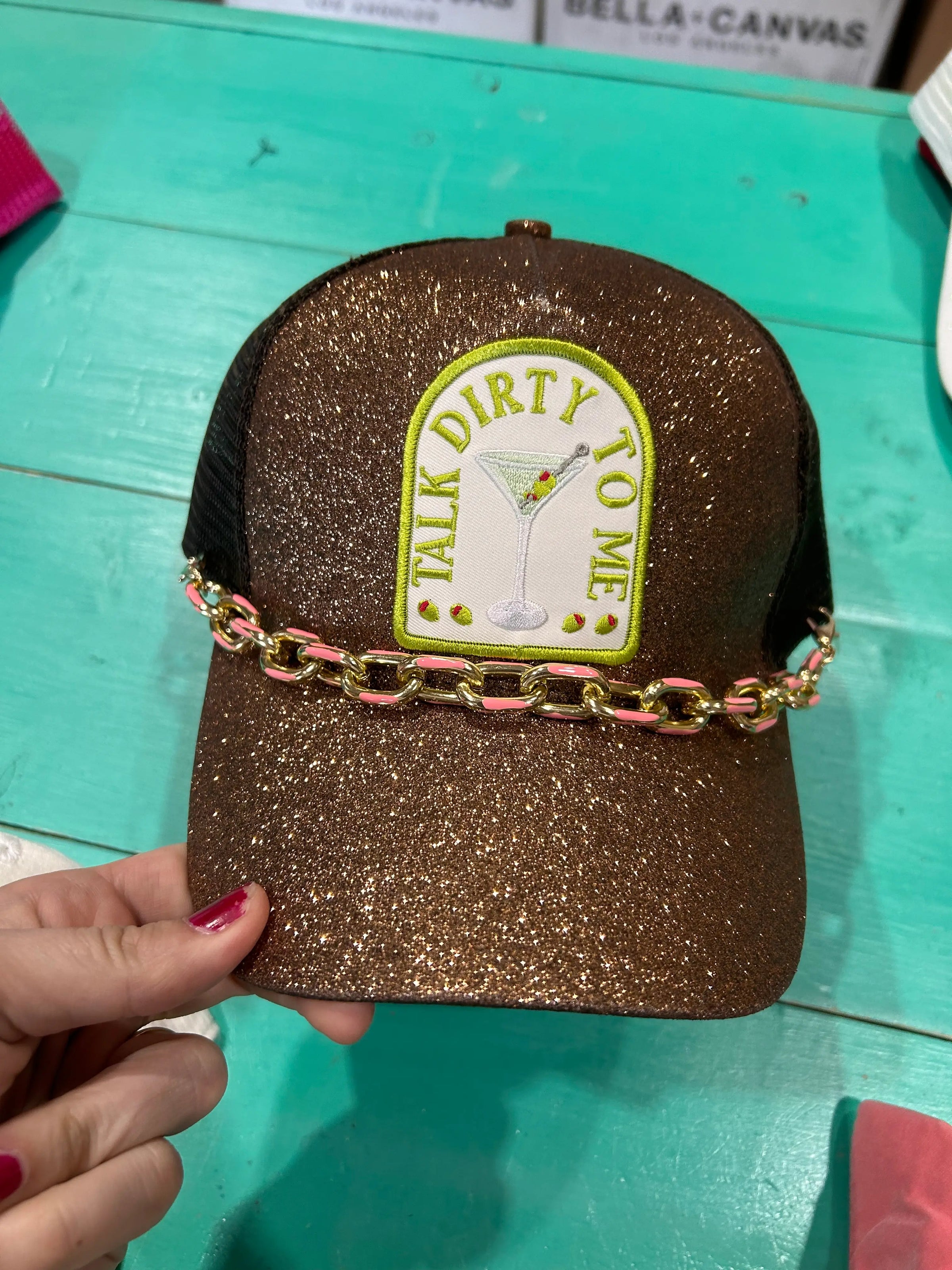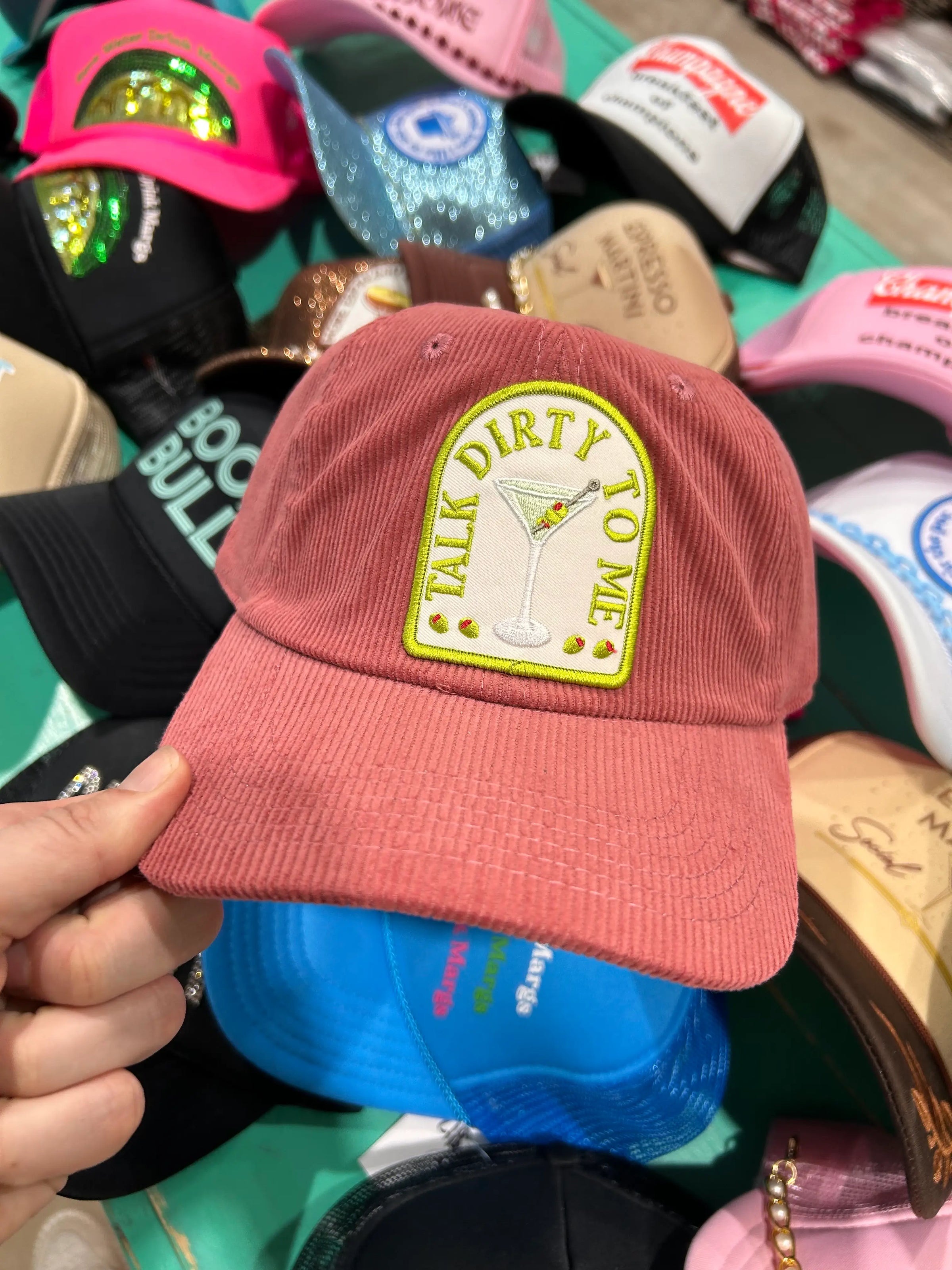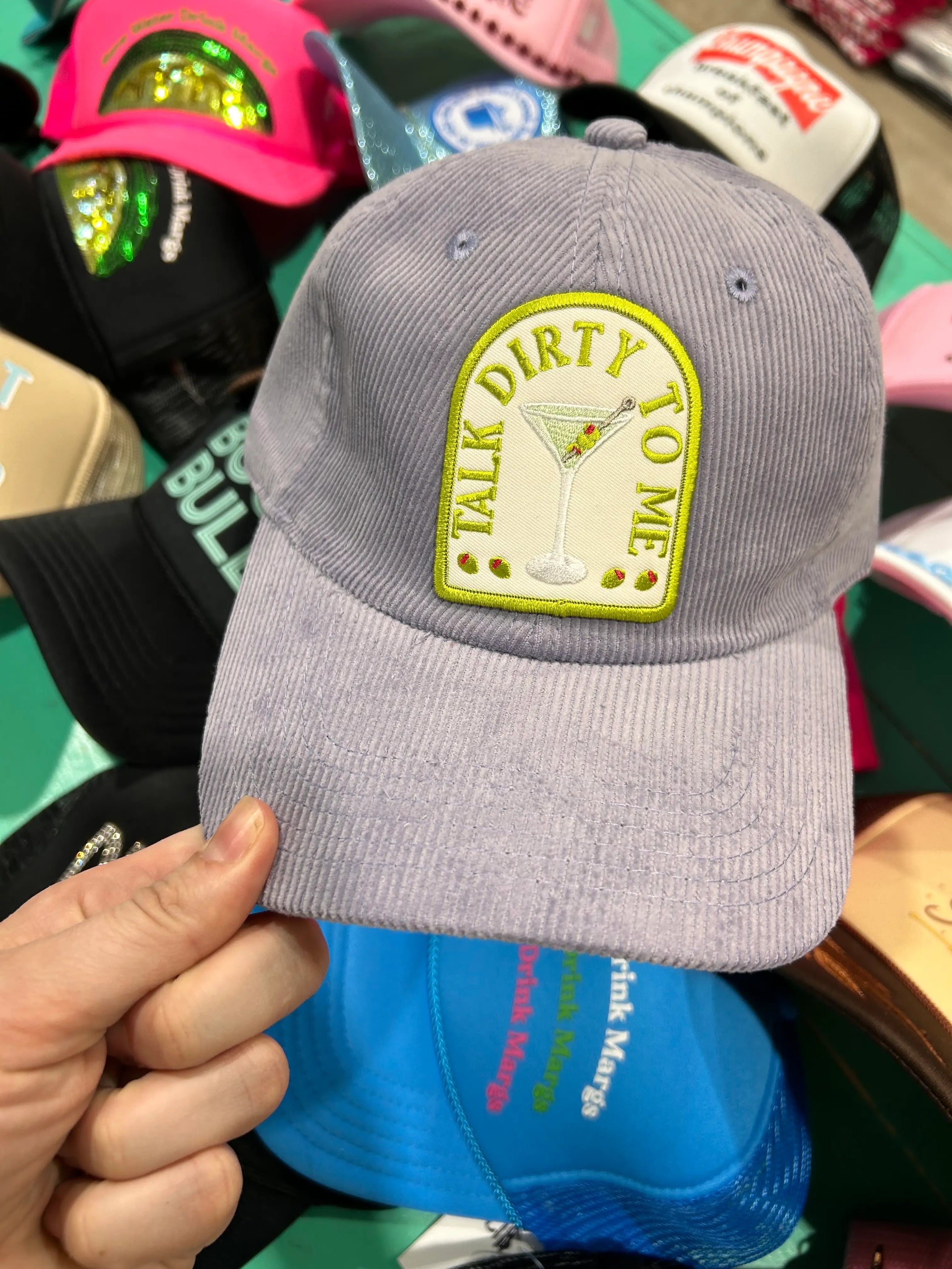 This is for the Martini Lovers!! Talk Dirty to Me.... Dirty Martini that is! This super cute, embroidered patch has a merrowed edge. It is available on several of our favorite style hats including corded dad hats, glitter ponytail caps, retro rope hats, and foam truckers! Don't forget to pair with one of our trucker hat chains for the perfect look.