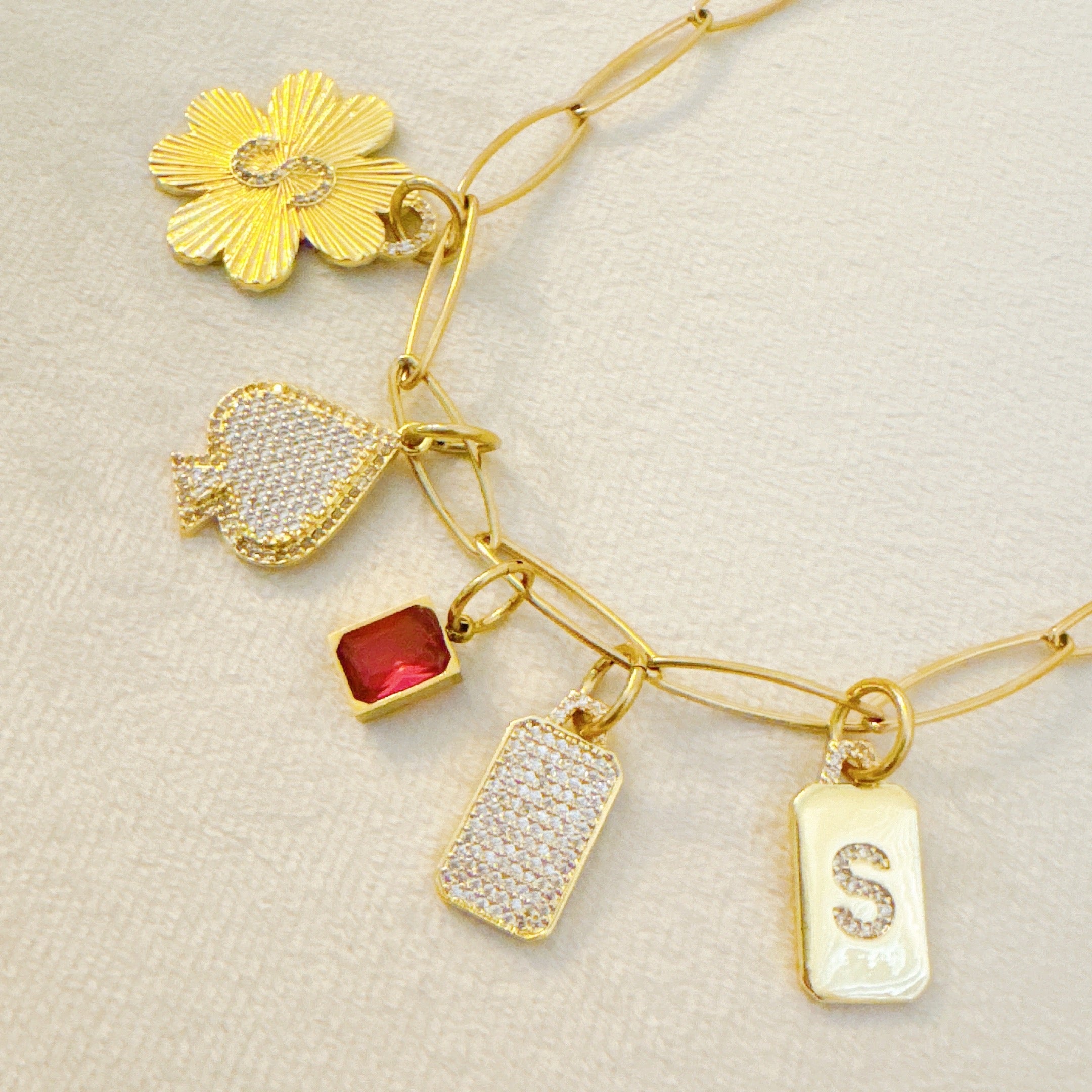 Introducing the Clover Initial Seamless Clip Charm, featuring a sunburst clover and sparkly initial for the perfect combo. Its seamless clip design allows for versatile wear, whether on a necklace, bracelet, or even as a shoe charm. Add a touch of charm and personalization to any look with this must-have accessory.
