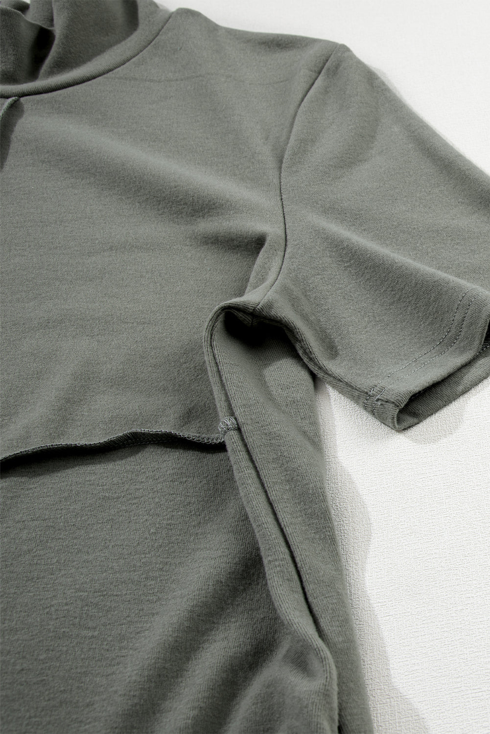 Elevate your wardrobe with this chic and timeless t-shirt dress. Boasting a high neck and charming cross seam design, it exudes effortless elegance. Plus, with side seam pockets for functionality, this mini dress is perfect for any occasion. From the office to casual outings, this dress has got you covered.