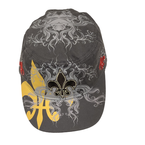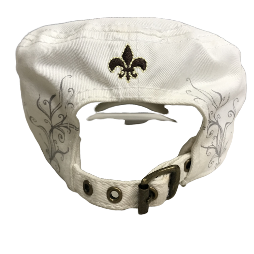 This stylish cap has an embroidered fleur de lis on the front, on each side and the back plus a yellow fleur de lis on the front with a scroll design on the cap! This cap is adjustable.