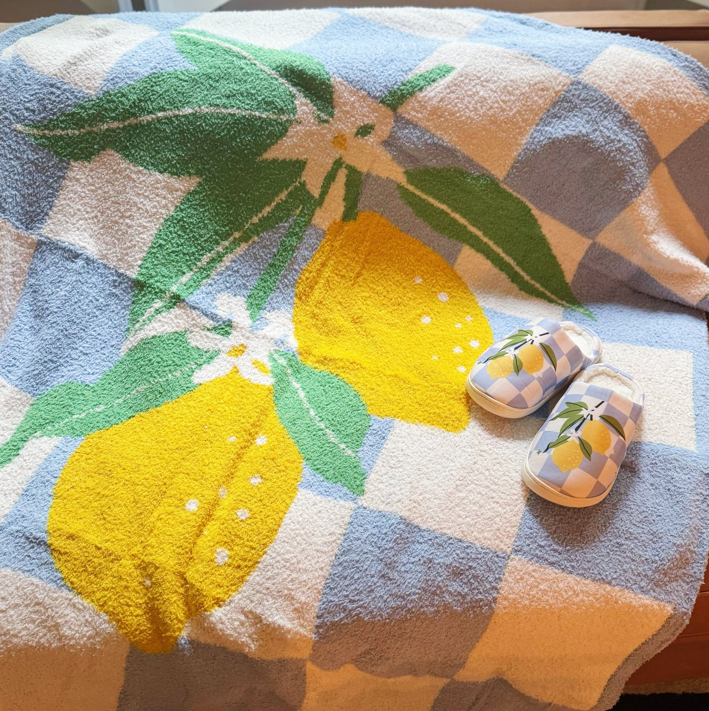 Wrap yourself in cheerful comfort with the Lemon Drop Gingham Blanket. This delightful blanket features a vibrant lemon and checkered gingham pattern that instantly brightens up any space while keeping you cozy.