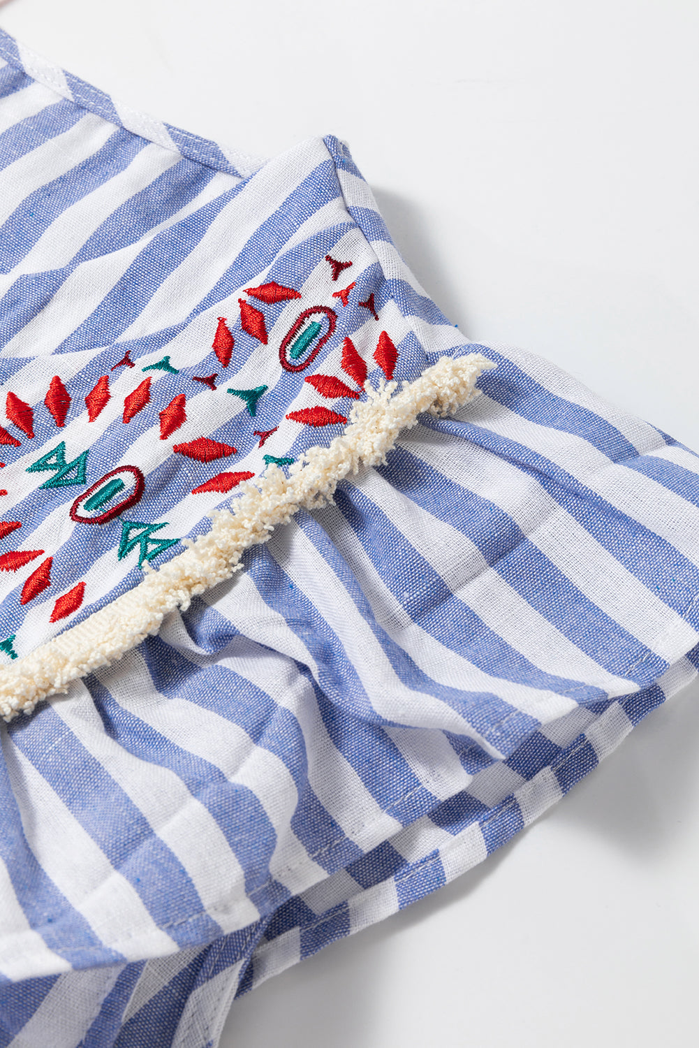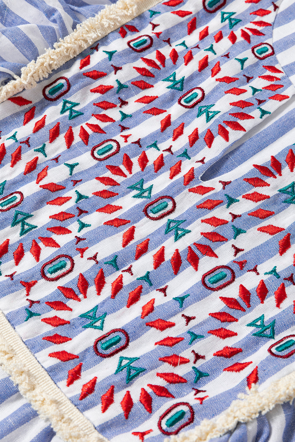 ARIYA STRIPE GEO PATTERN EMBROIDERED TASSEL FLUTTER Plus BLOUSE