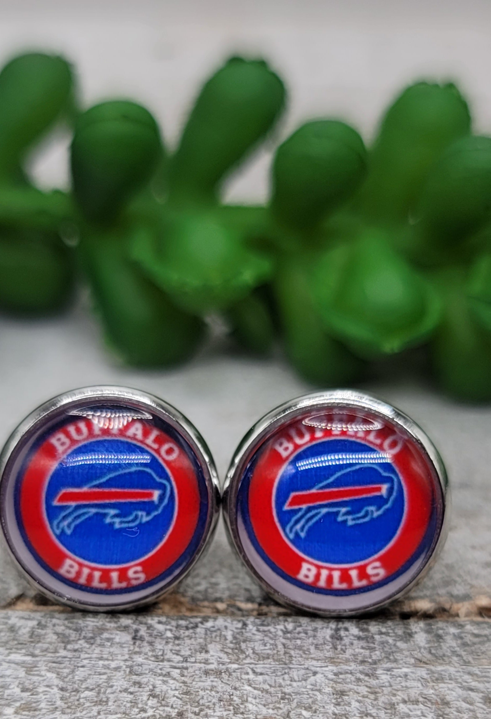 Buffalo Bills Football - Circle || 12mm Glass Stud Earrings || Hypoallergenic