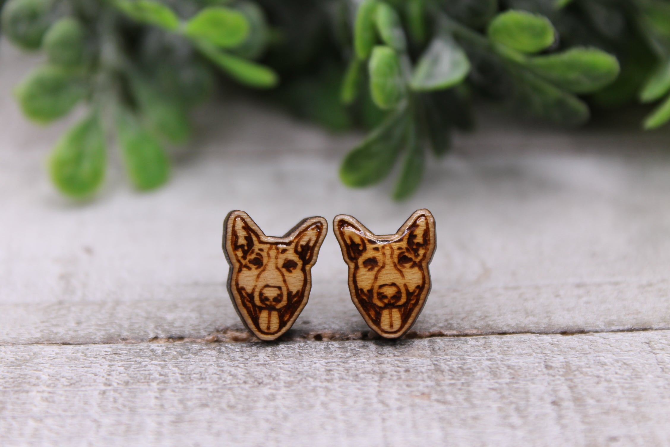 Bull Terrier Dog Breed || Wood Stud Earrings || Hypoallergenic