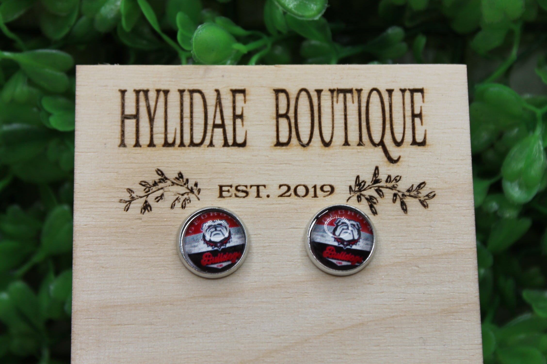 Bulldogs on Stripes 12mm Glass Stud Earrings