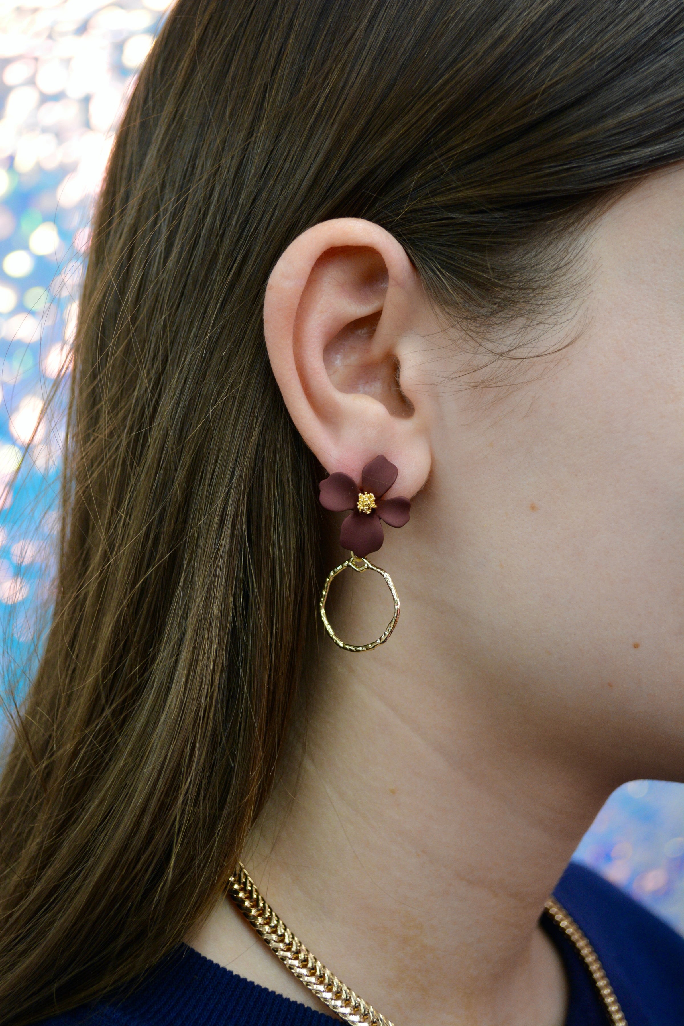 Burgundy Lillian Flower Drop Earrings
