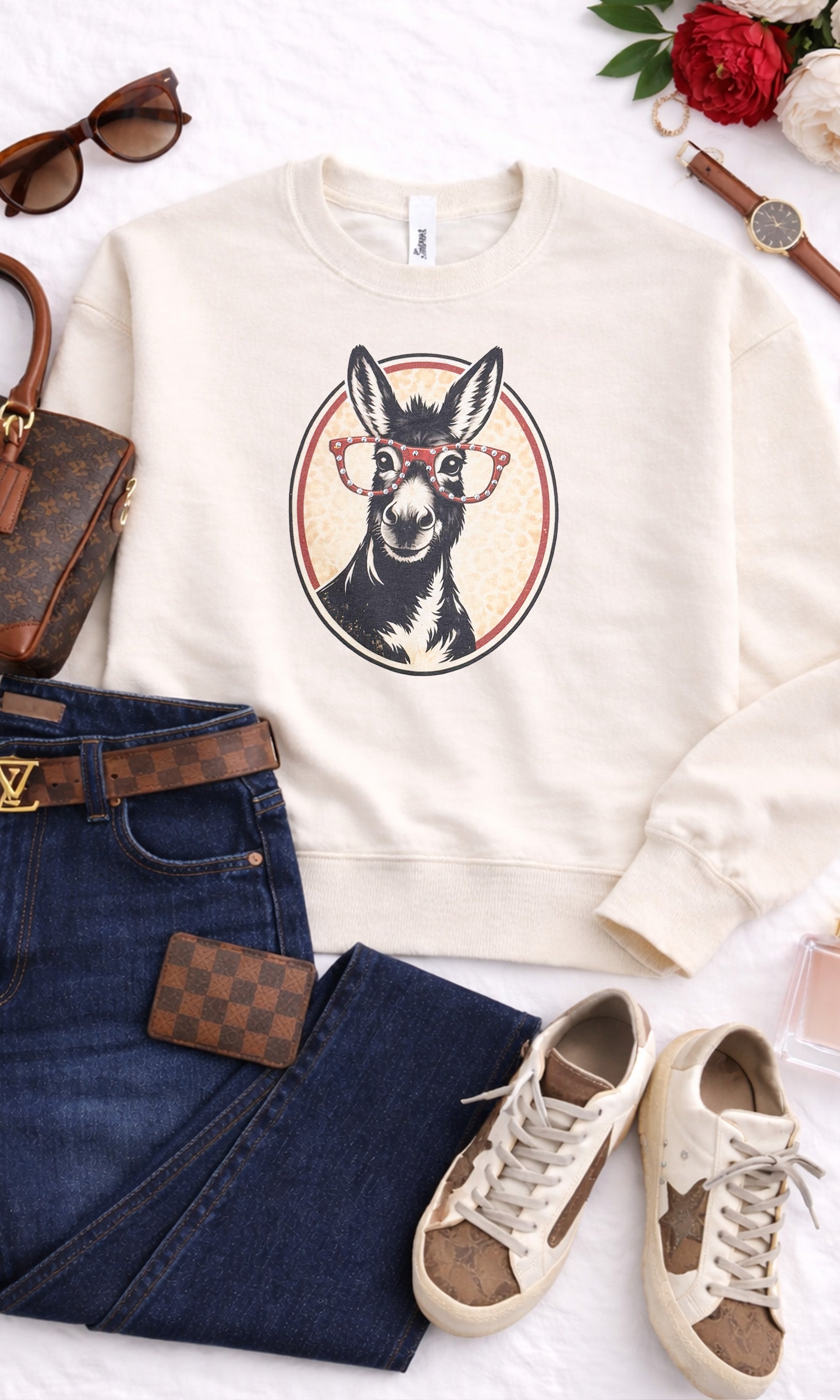Expressive and playful, the Donkey with Rhinestone Specs Graphic Sweatshirt brings a touch of whimsy to everyday casual wear. Designed for graphic-tee lovers who want a cozy, standout piece, this sweatshirt blends comfort with a sparkly, conversation-starting print.