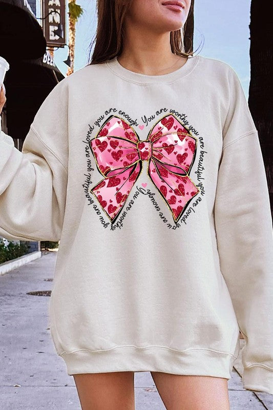 Faux Glitter Valentine Bow You Are..Graphic Fleece Sweatshirt.