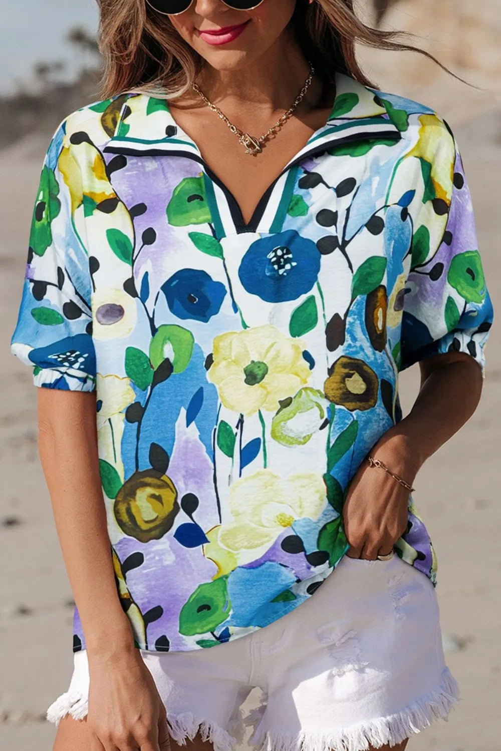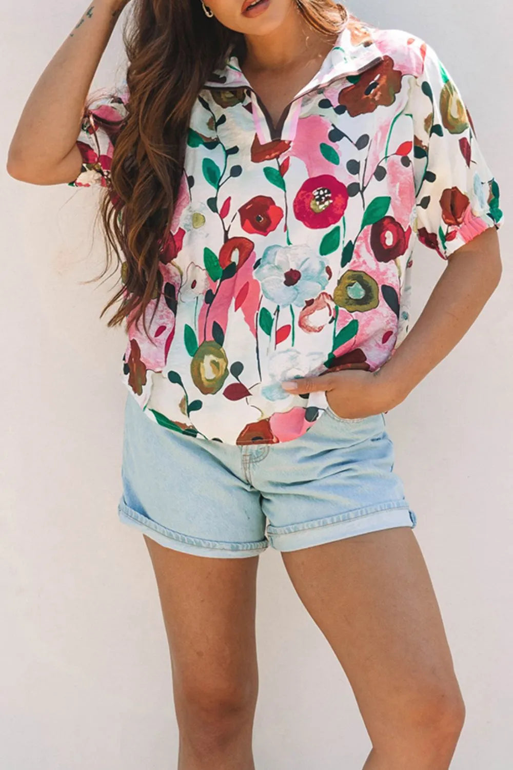 Floral Print Short Sleeve Blouse