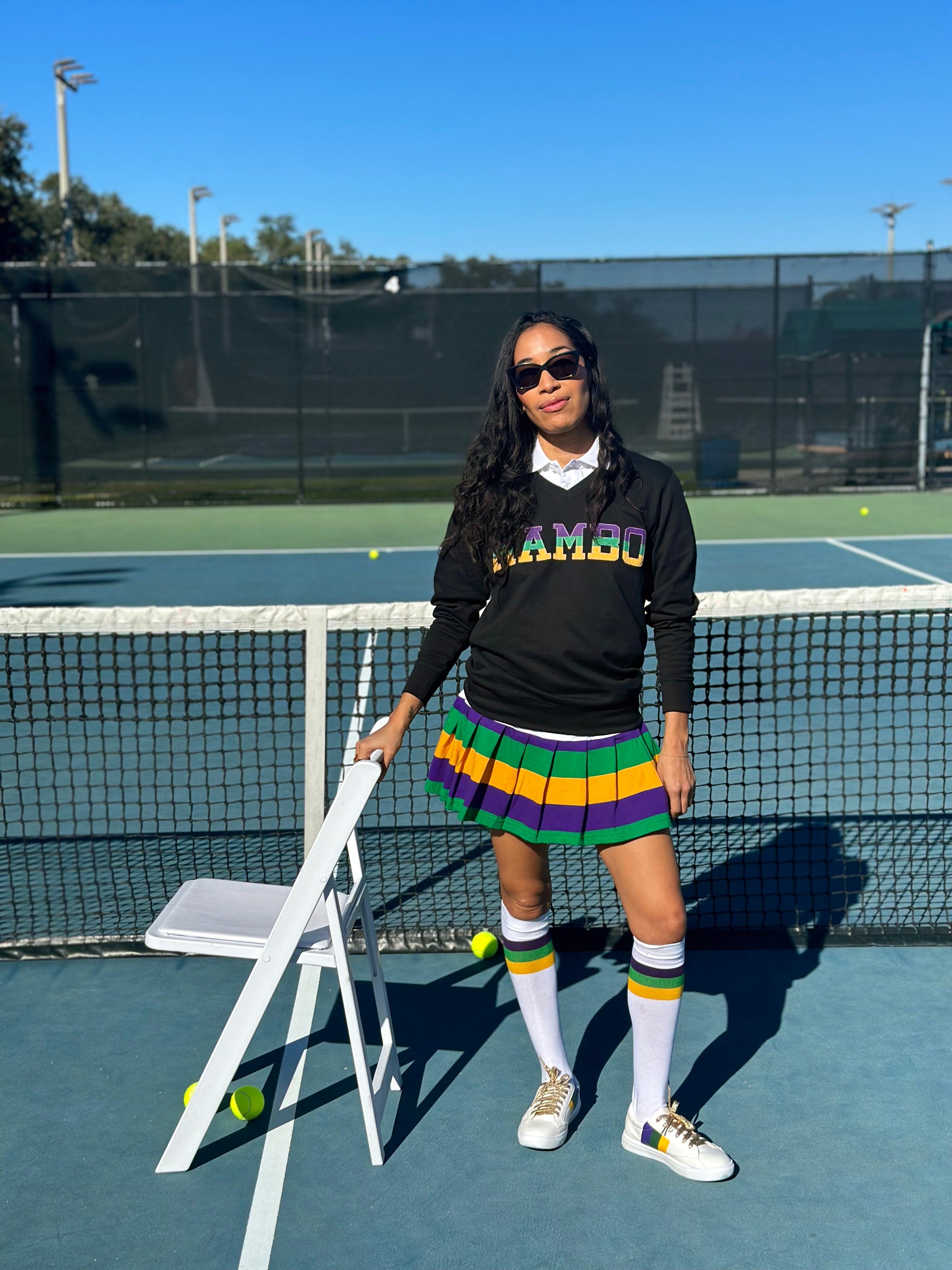The one we never take off… unisex, cozy, comfortable while also being festive! This ones going to become a staple in your Mardi Gras wardrobe!