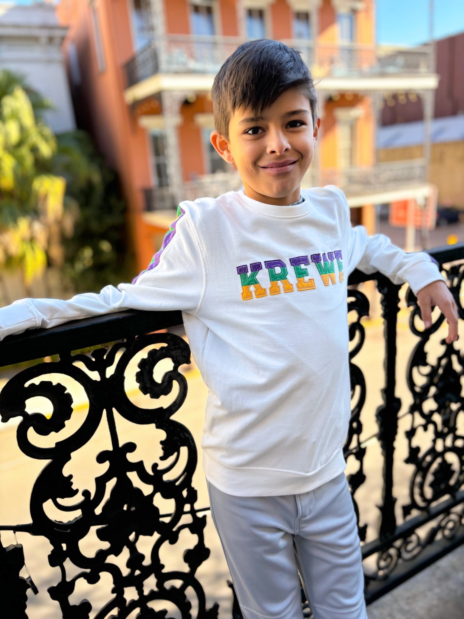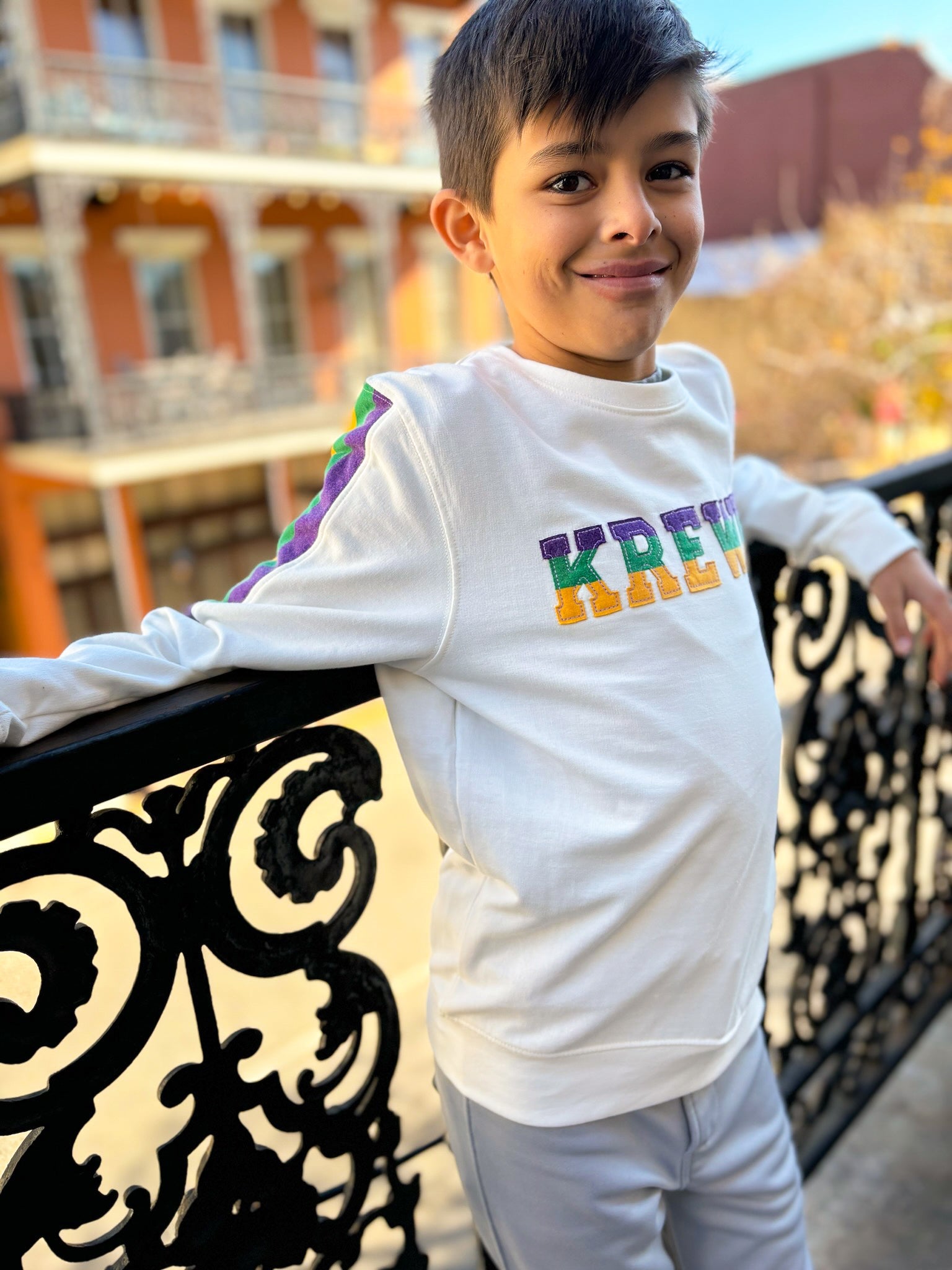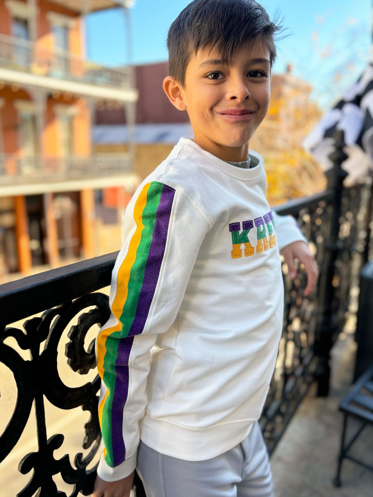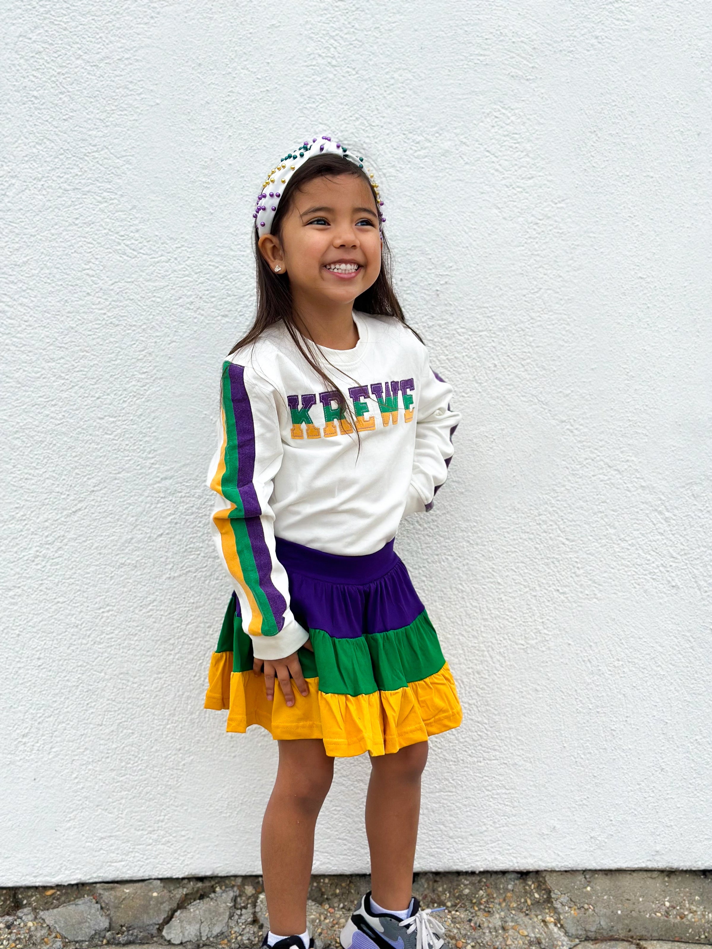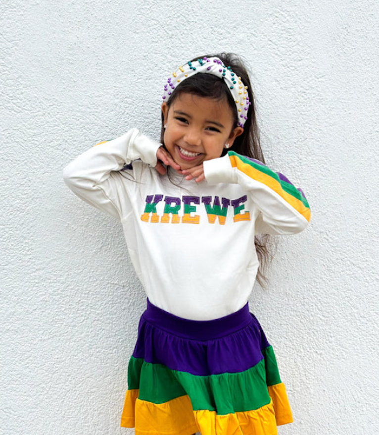 Celebrate Mardi Gras with this cozy, comfy KREWE pullover. In kids sizes by request! This pullover is super cute and fashionable. Ideal for the kids and is unisex.