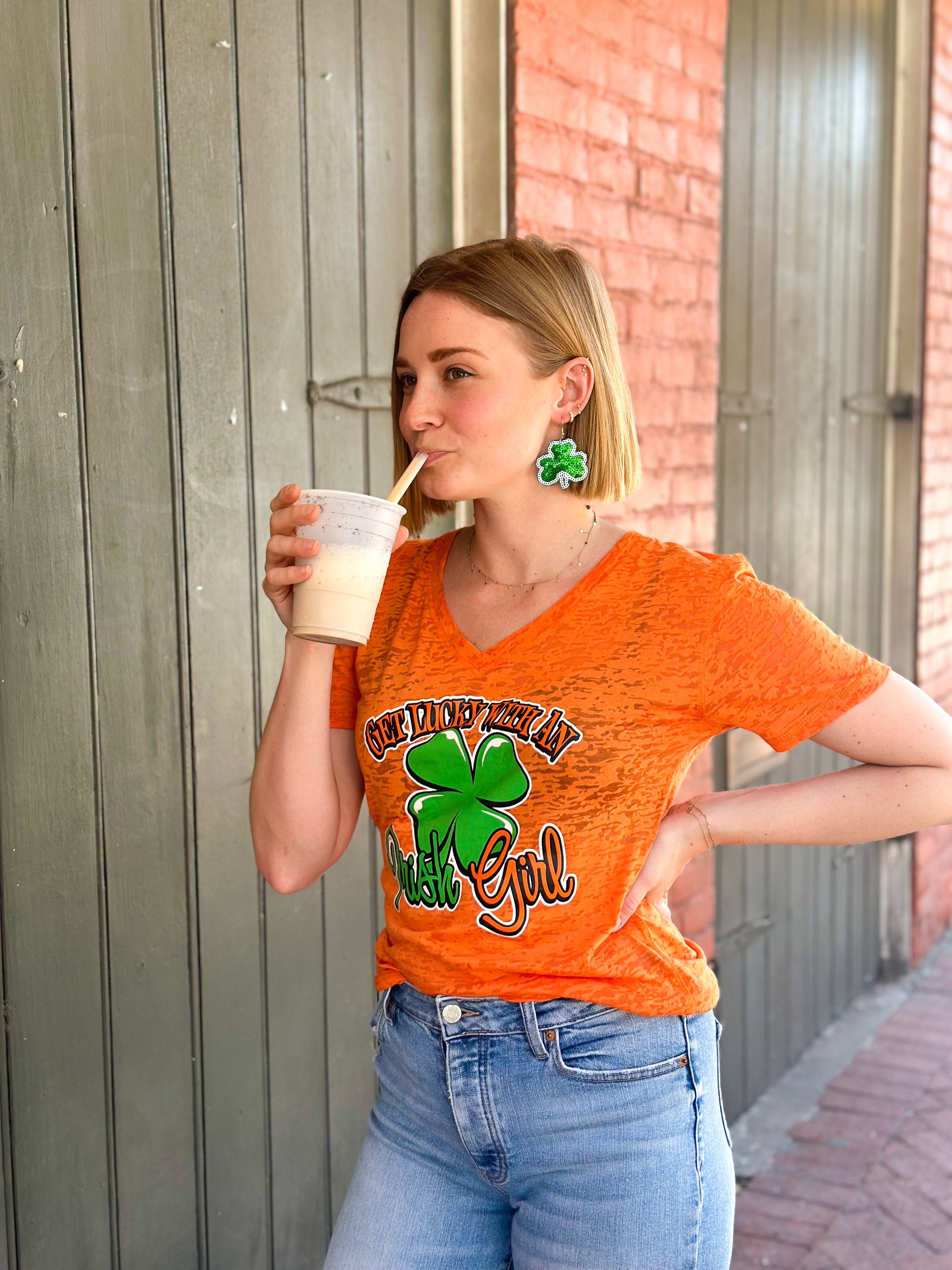 Get lucky with this fun and flirty Irish Girl T-Shirt! Perfect for St. Patrick's Day, this shirt will bring you good fortune (and maybe even a kiss from a charming Irish lass). Show off your Irish pride with this playful and stylish tee.