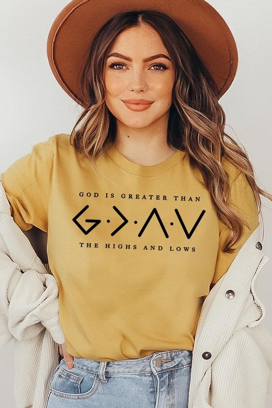 God is Greater Than High And Lows, Bible Verse, Romans 8:28, Faith over Fear, Believer, Easter, Christian, Jesus, Religious, Graphic Tee.