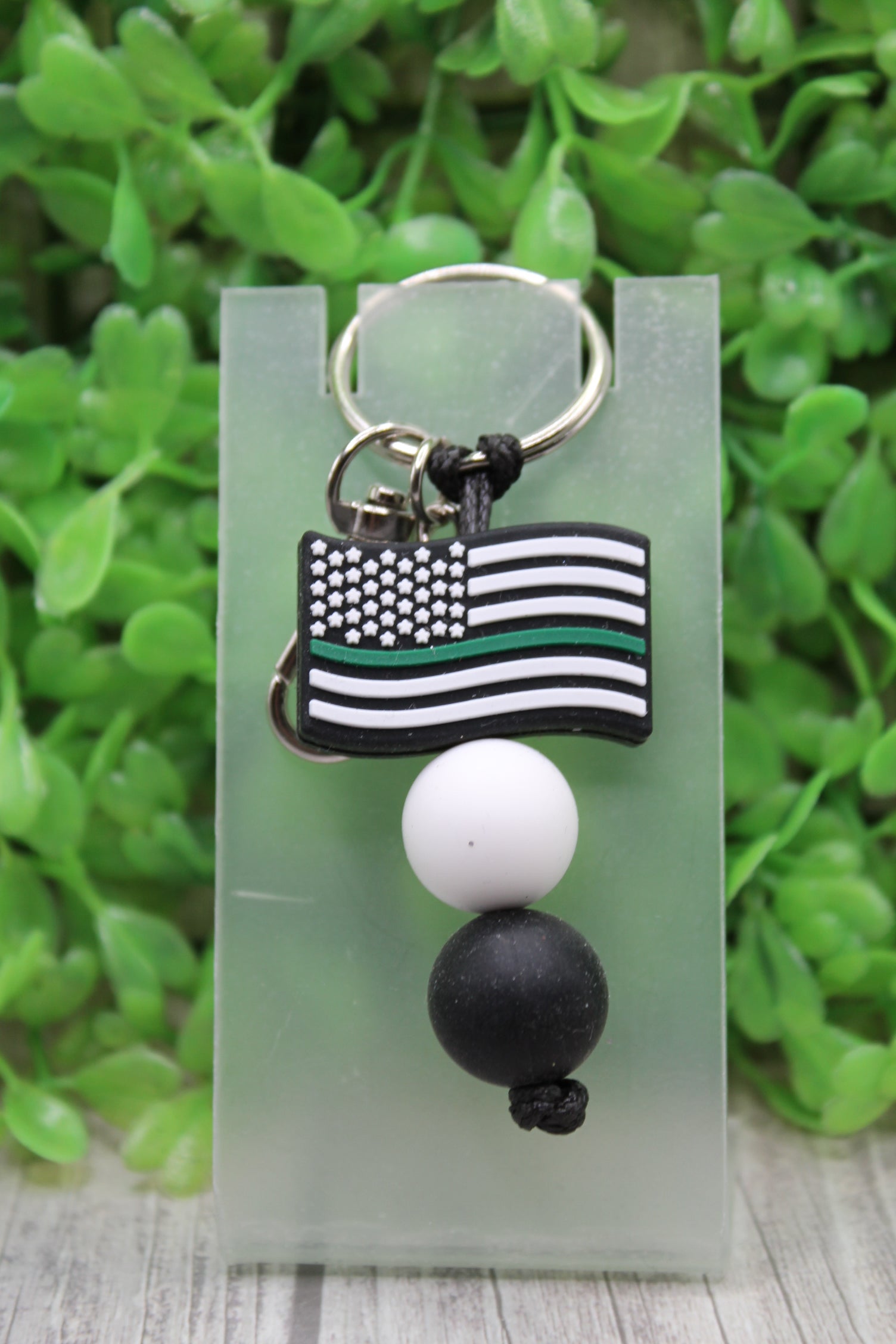 Green Line Flag Silicone Bead Keychain