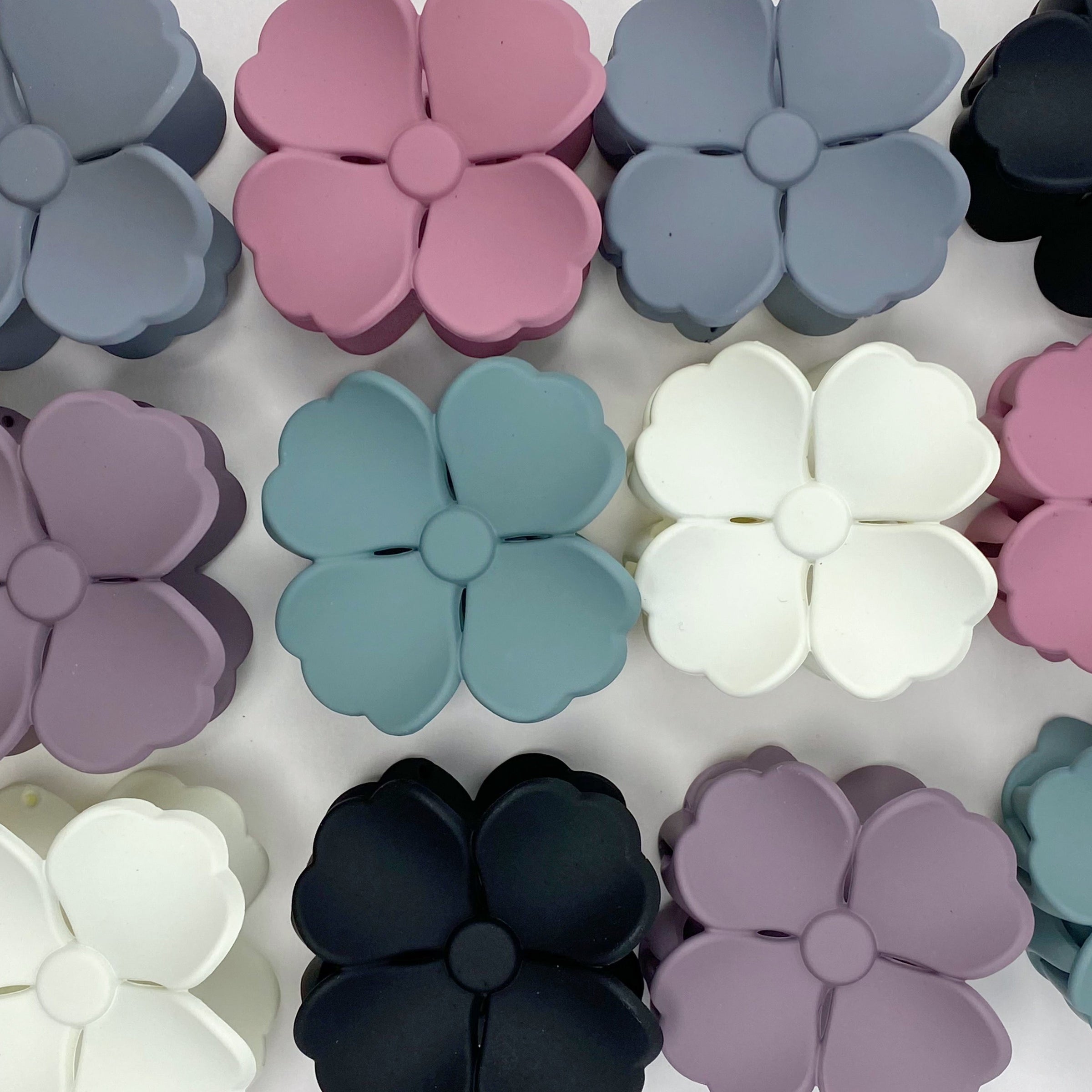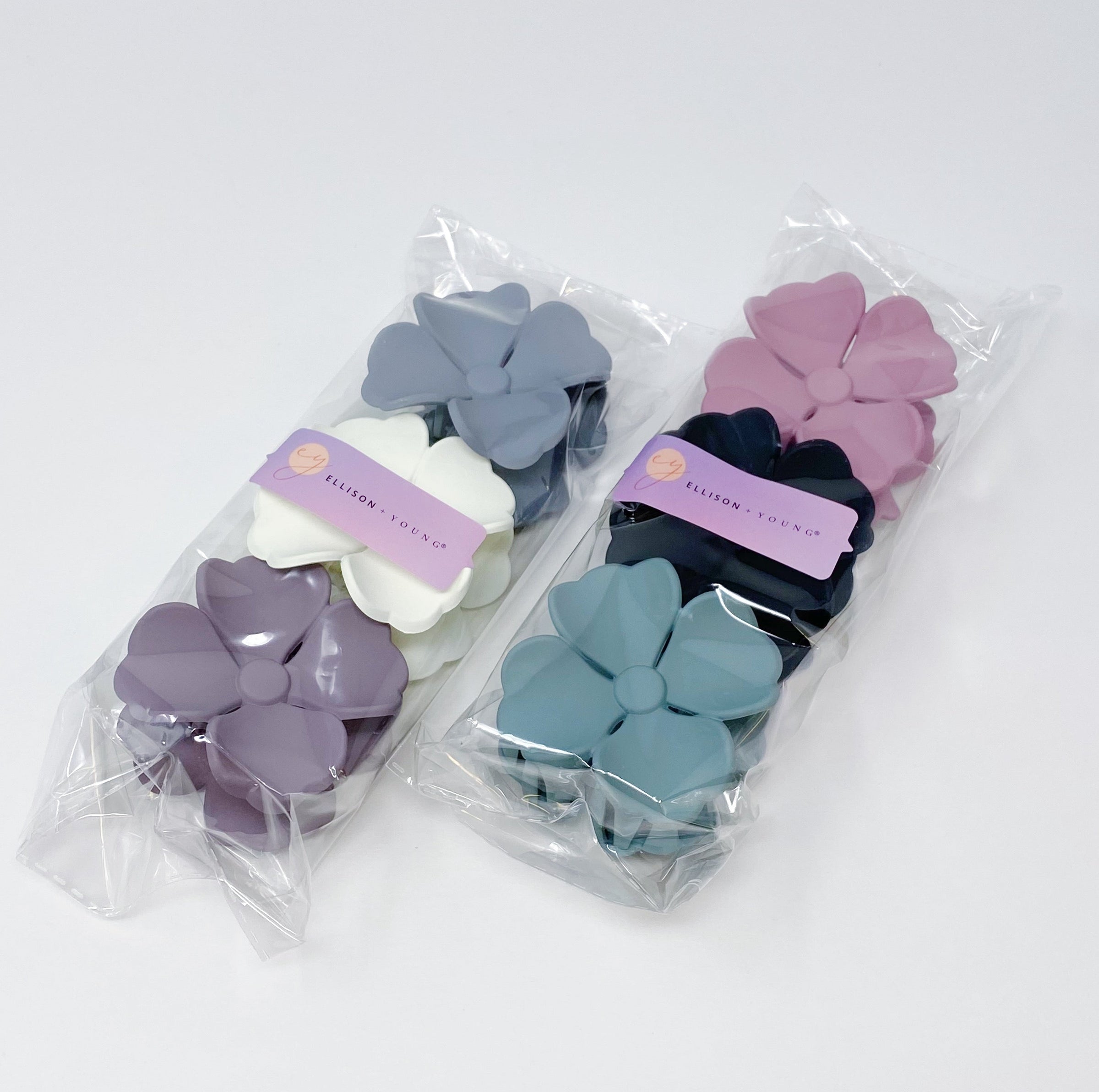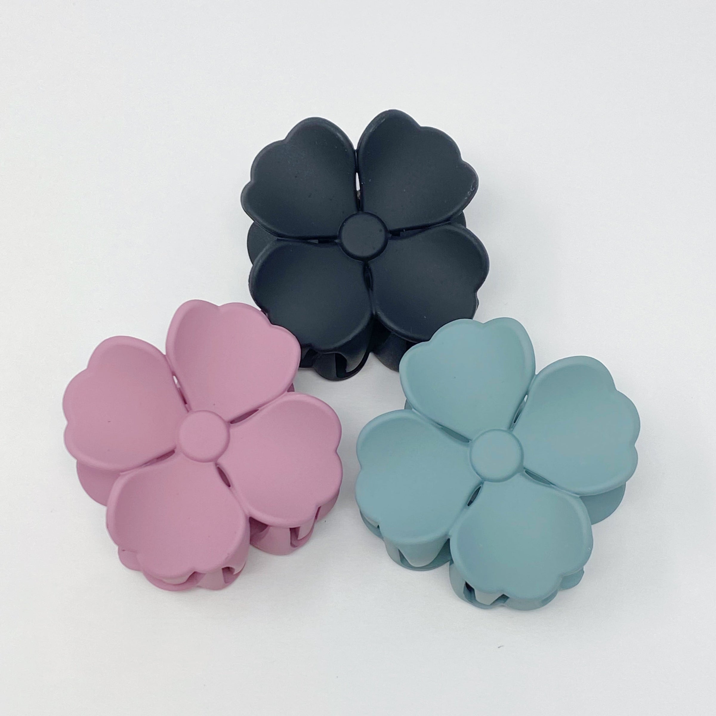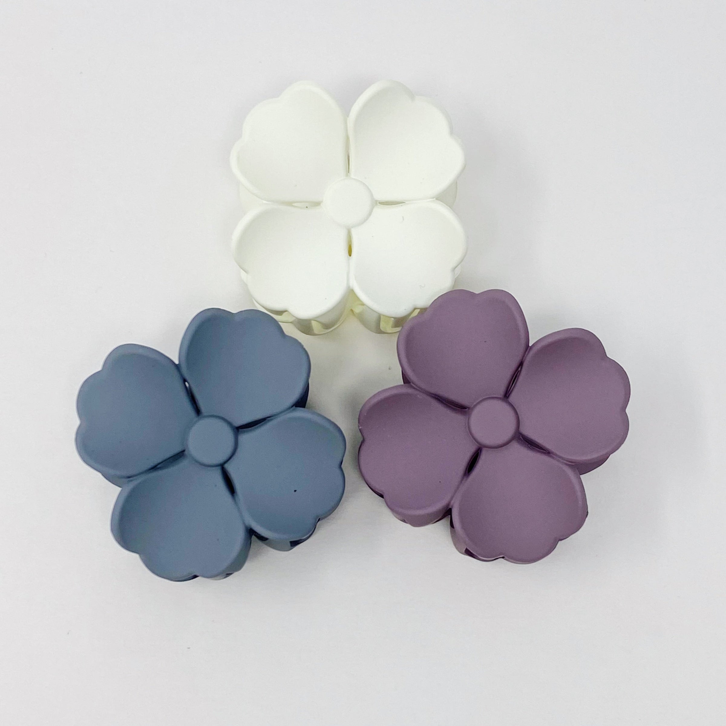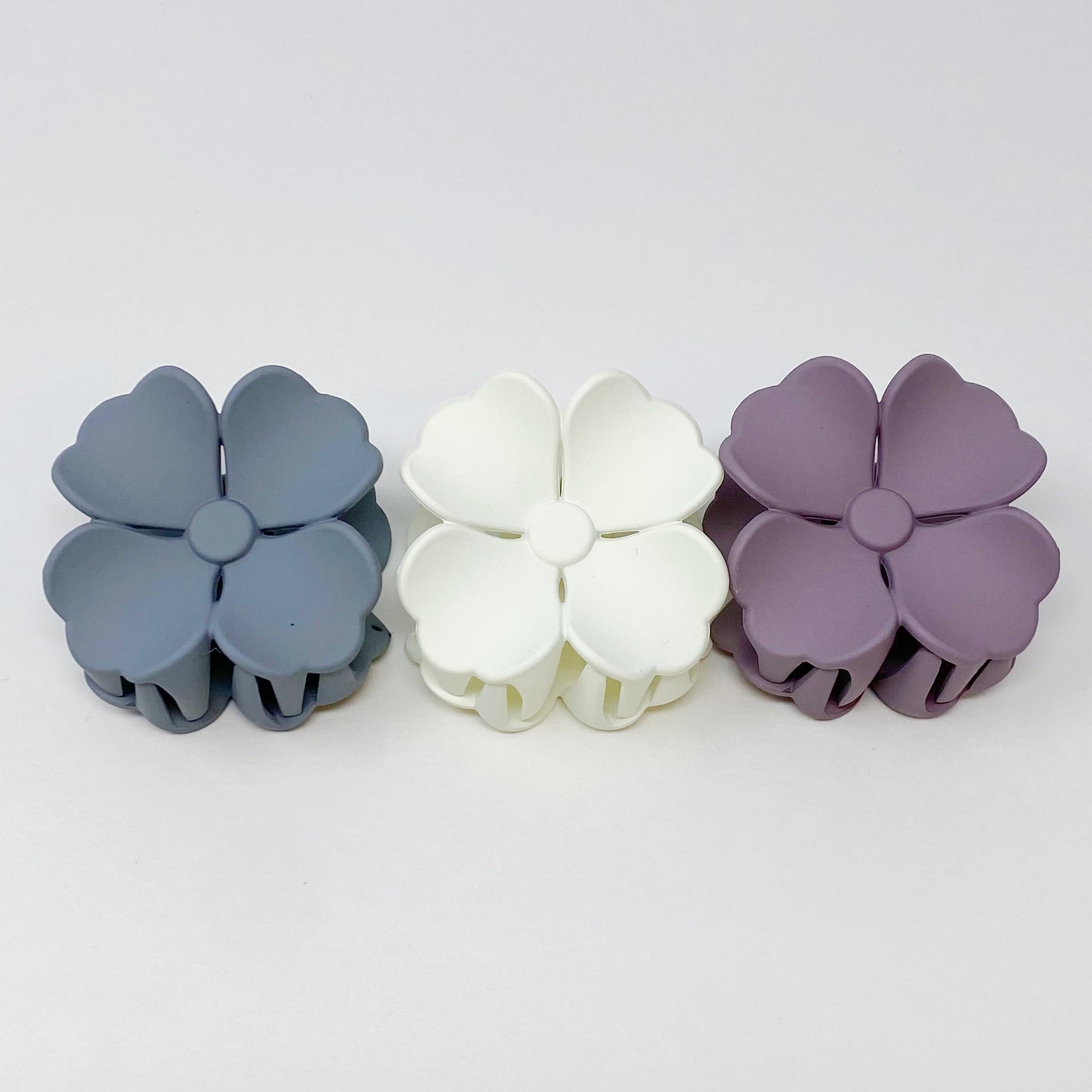 Three beautiful flower hair claws come in this set. Absolutely beautiful colors and matt finish on each claw in the set!