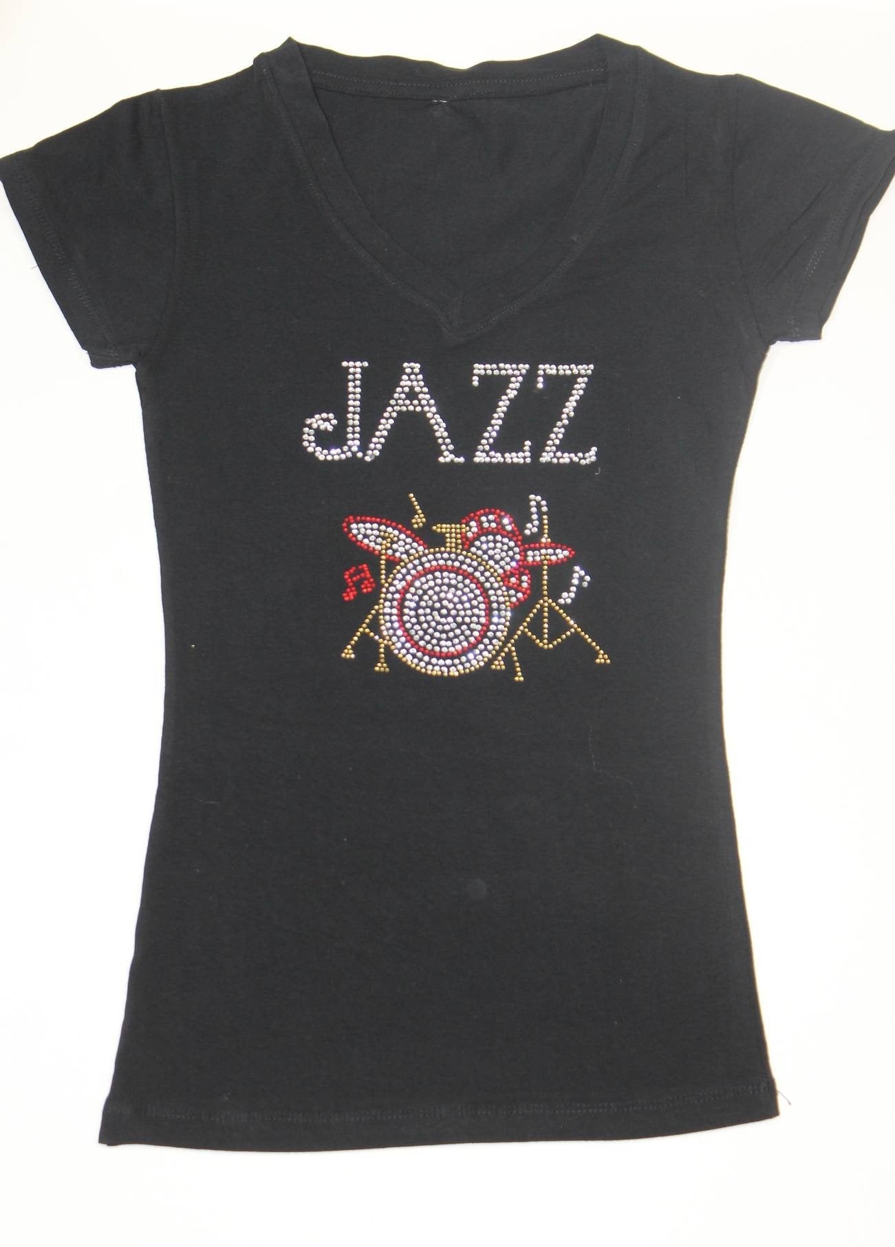 JAZZ with Drums and Music Notes Rhinestone