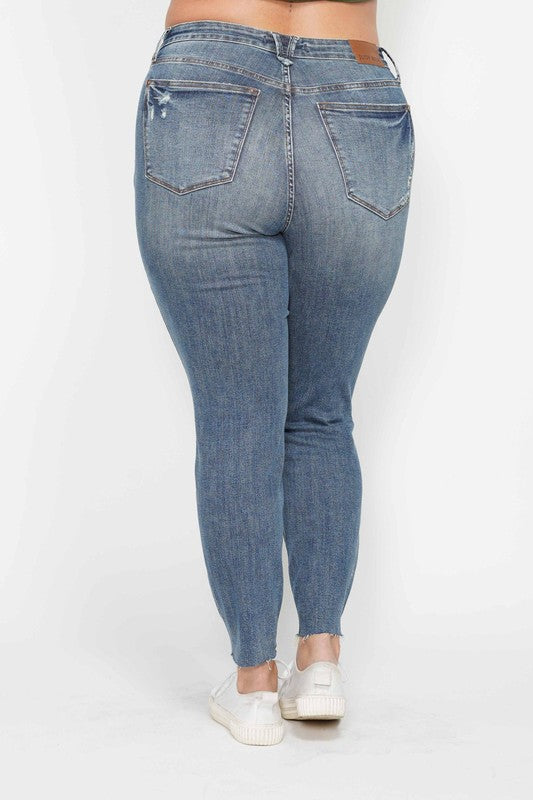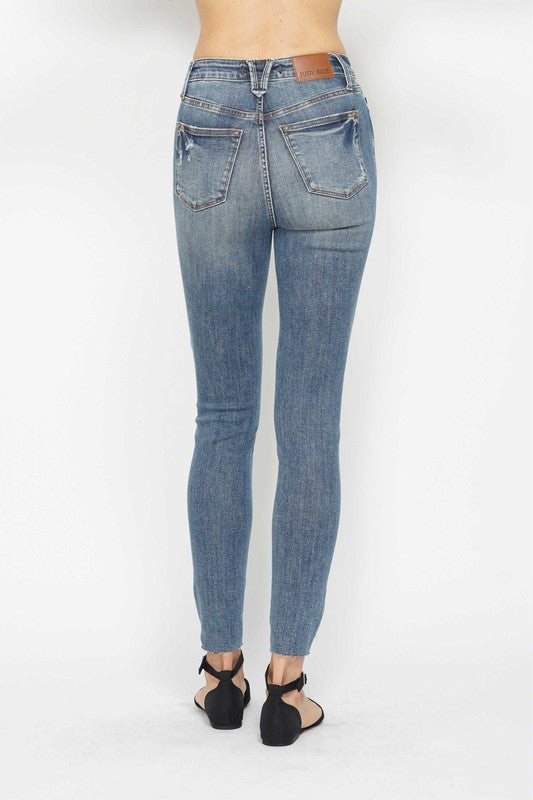 HW Tummy Control Vintage Wash Hem Destroy Skinny