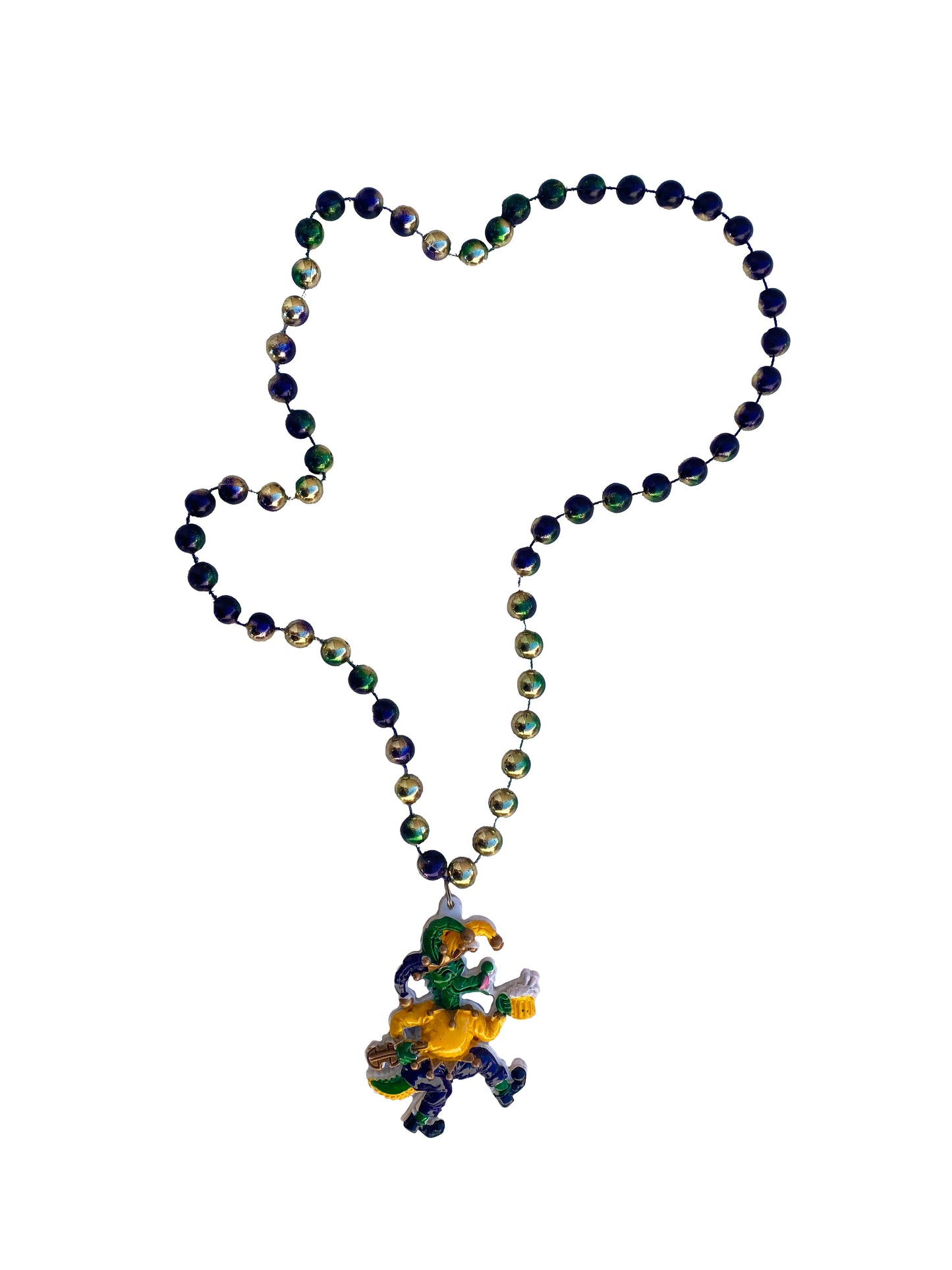 Be the king of the Mardi Gras parade with our Jester Alligator bead! This quirky specialty bead features a fun alligator design in vibrant purple, green, and gold. Perfect for adding a playful touch to your party outfit and catching all the beads. (No gators were harmed in the making of this product, we promise!)