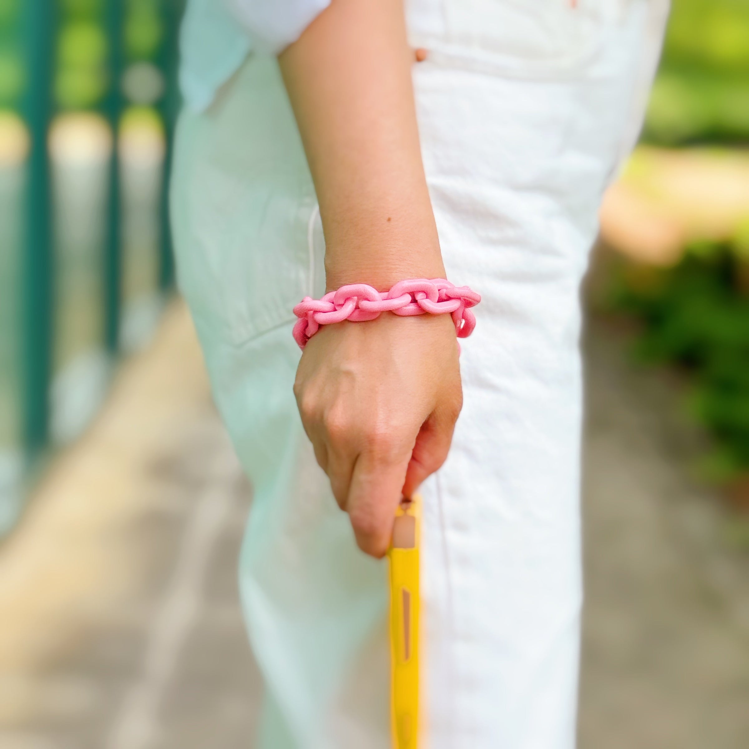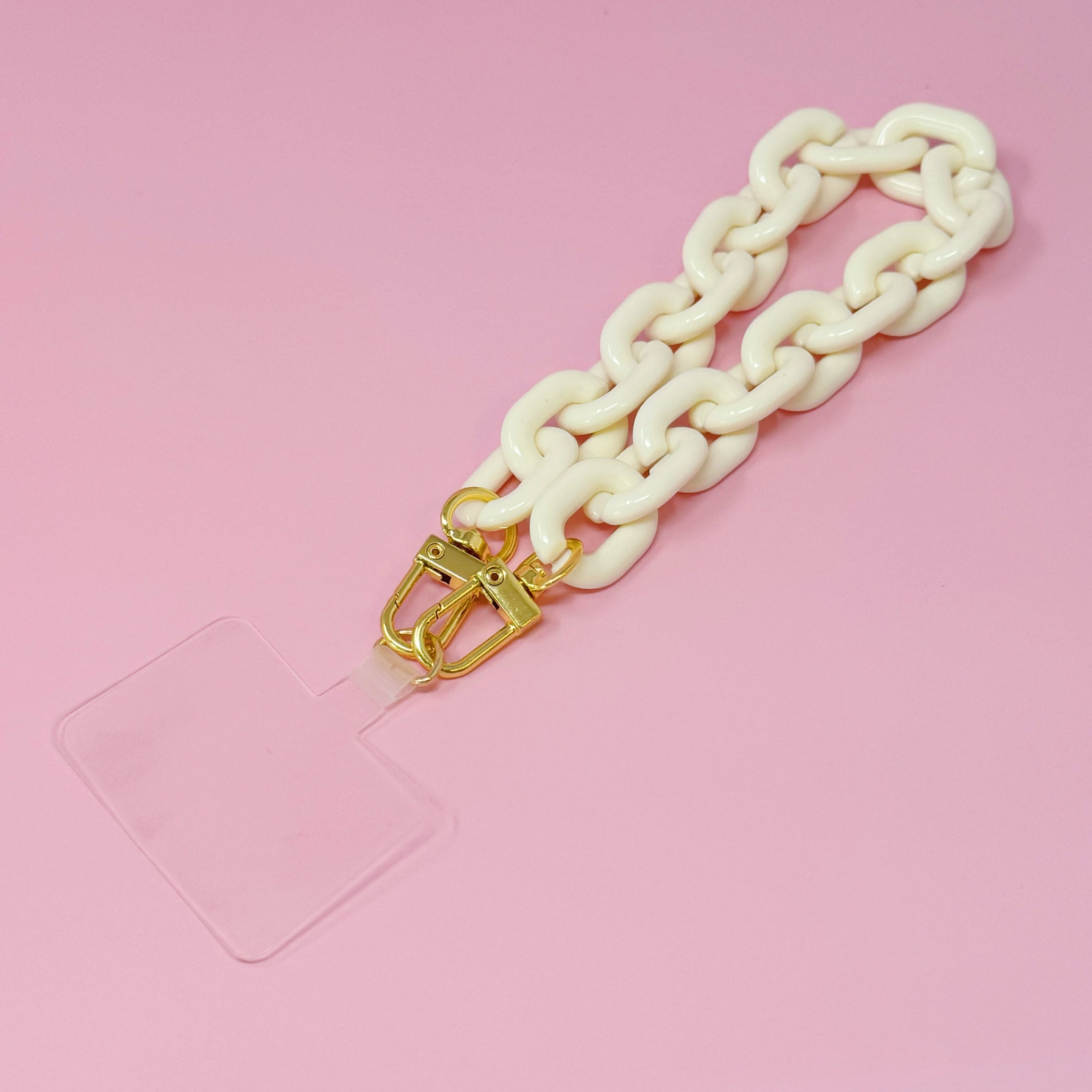 Attach this versatile wrist lanyard to your phone, wallet, or keys for hands-free convenience. The lightweight acrylic chain features golden hardware and includes a cello card for easy attachment. Keep your essentials close and secure with the Link Multi Function Phone Wrist Lanyard.