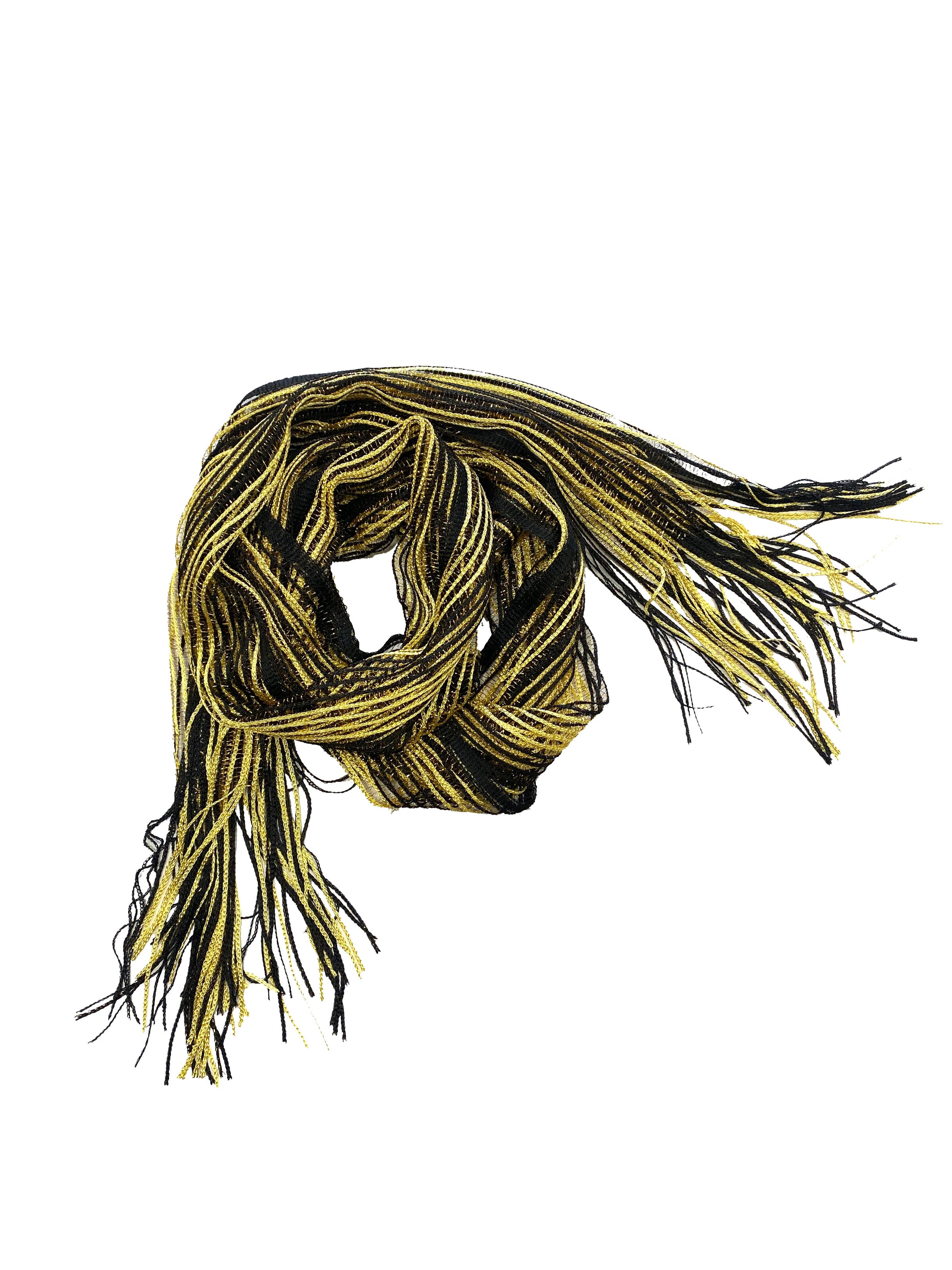 This mesh long scarf in black and gold is perfect for game day. Its lightweight and breathable fabric keeps you comfortable in any weather. Its eye-catching design adds a stylish twist to your game day outfit.