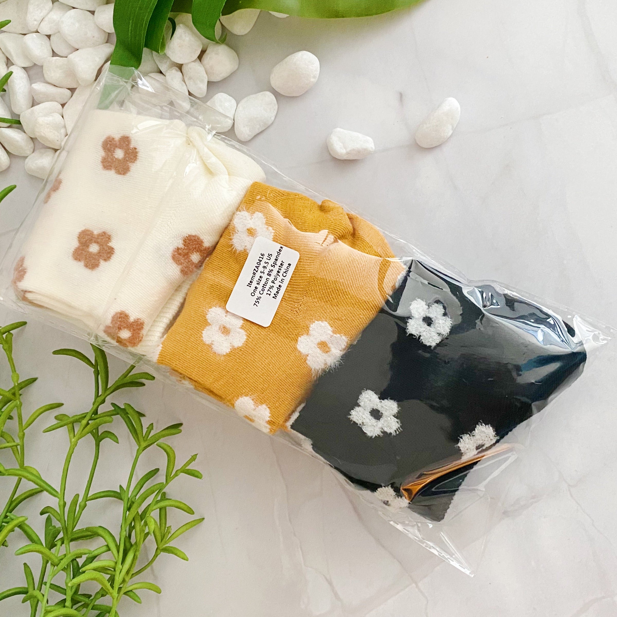 This set of Mini Daisy Happiness Socks offers three pairs of cute embossed daisy socks. Each pair features an eye-catching color combination, made from a super soft and flexible fabric for an effortlessly comfortable fit. Great for pairing with sneakers, loafers, and more. Packaged in clear cello bag with Ellison + Young logo sticker.
