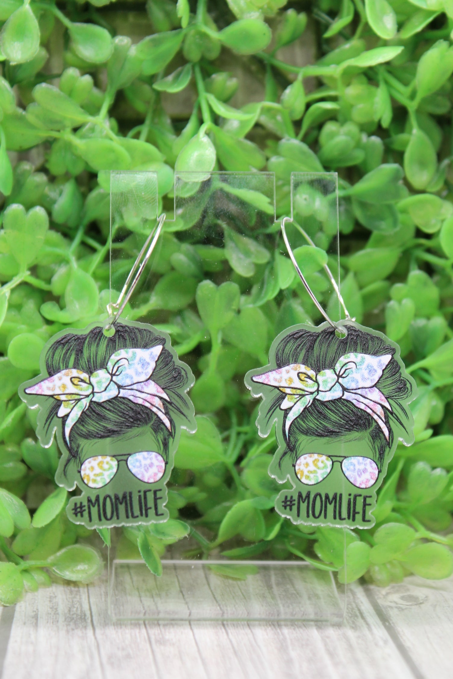 Mom Life Colorful Leopard Messy Bun Hoop Dangle Earrings
