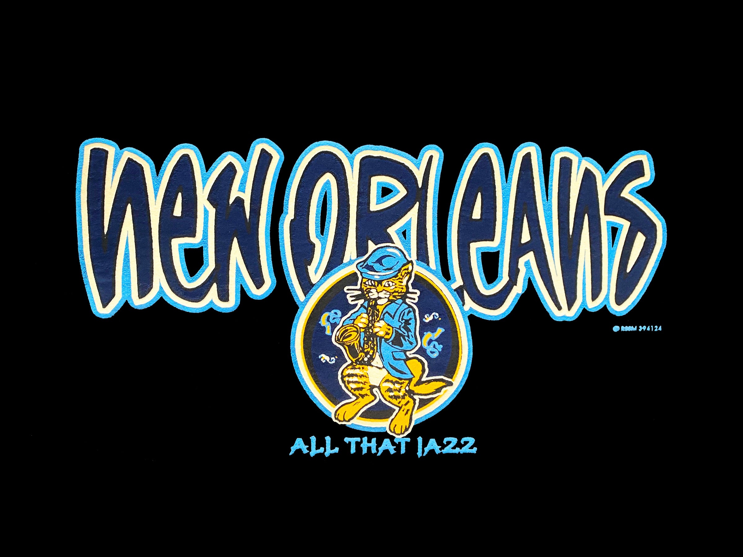 Get into the groove with our New Orleans Jazz Tiger t-shirt! Featuring a cool tiger jamming on the saxophone and "all that jazz" written below, this souvenir tee adds some fun and funk to your wardrobe. Let your wild side shine with this playful and unique design.