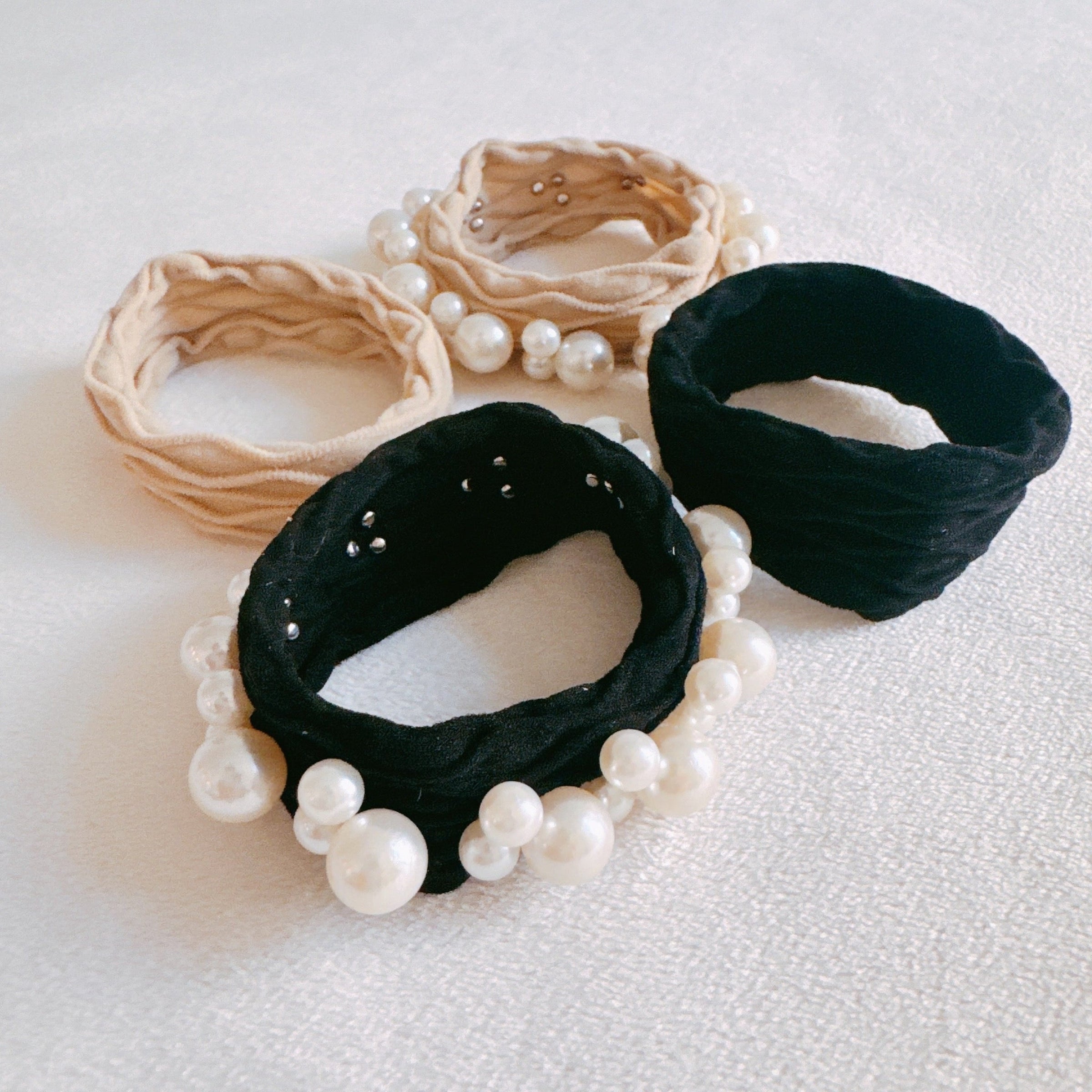 Pearls And Solid Hair Ties Set Of 4