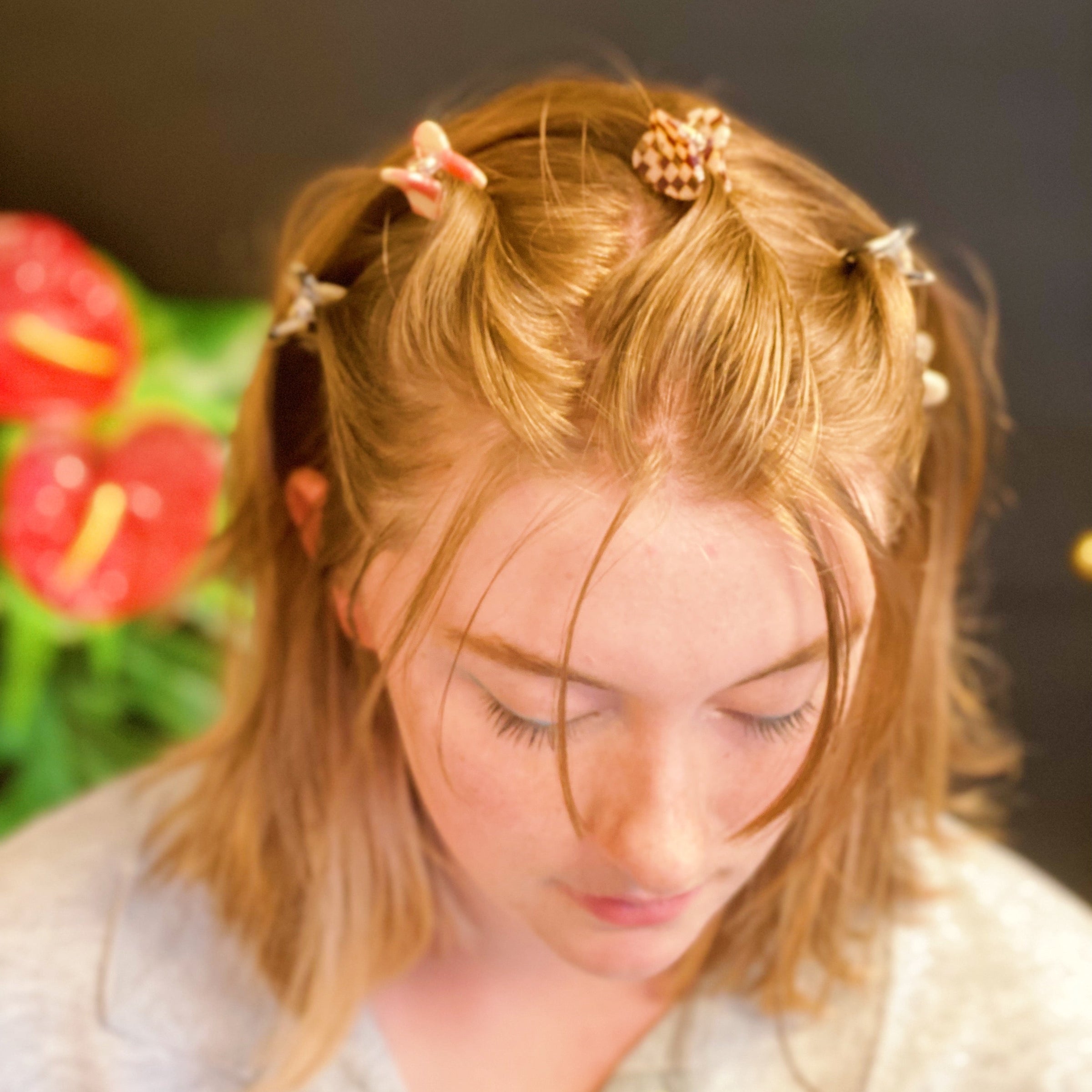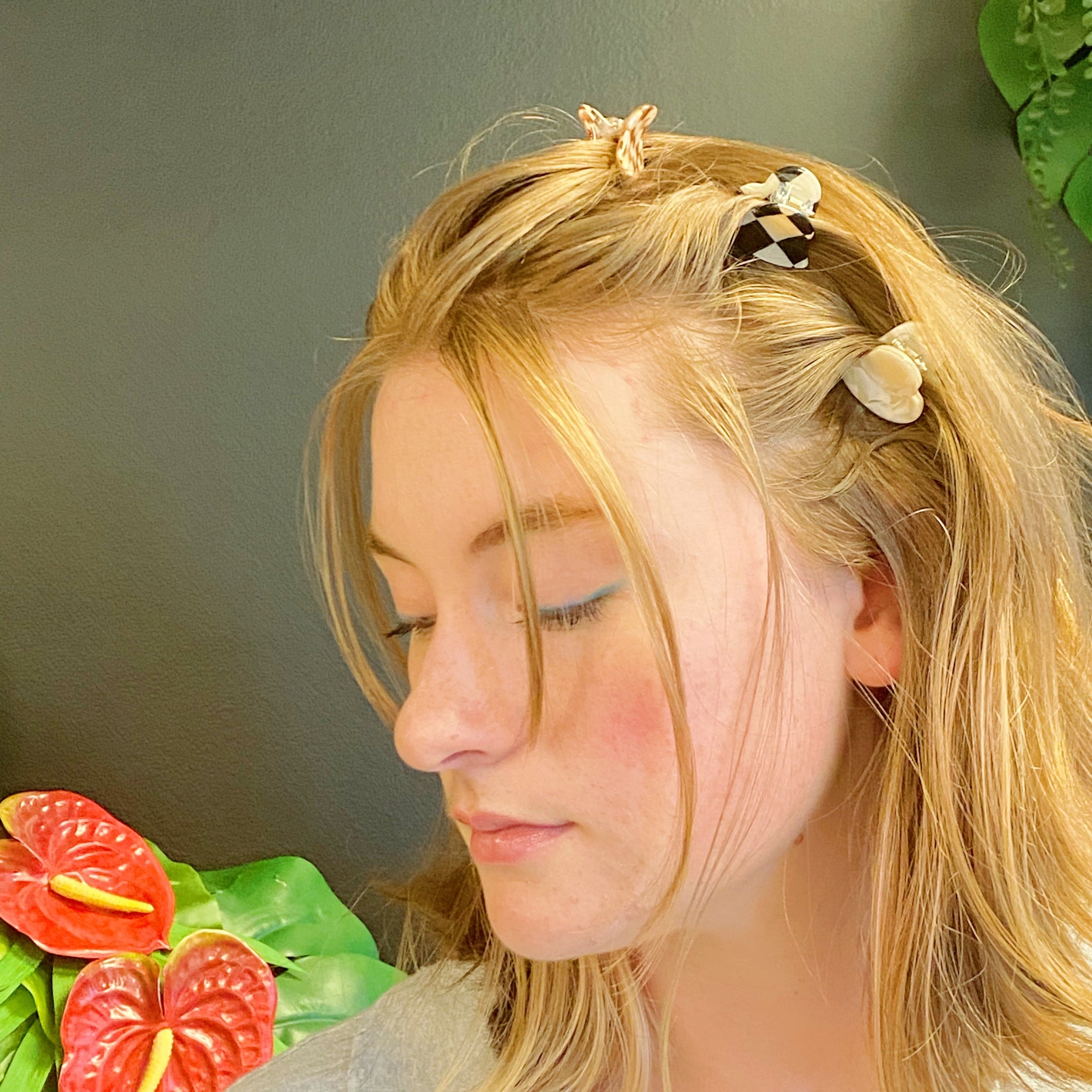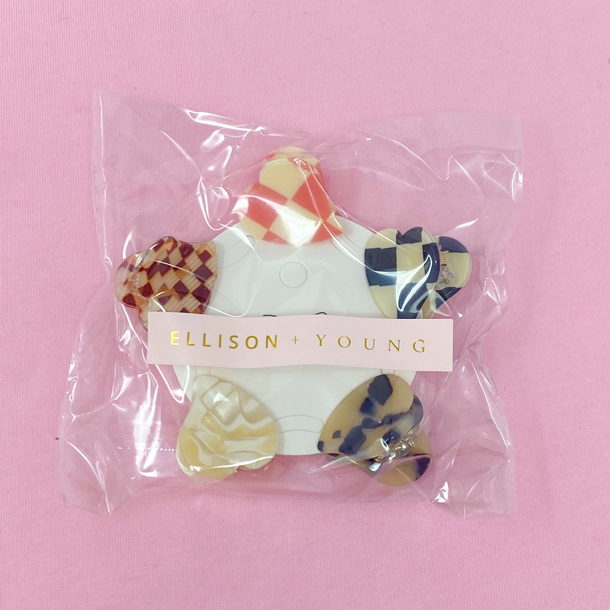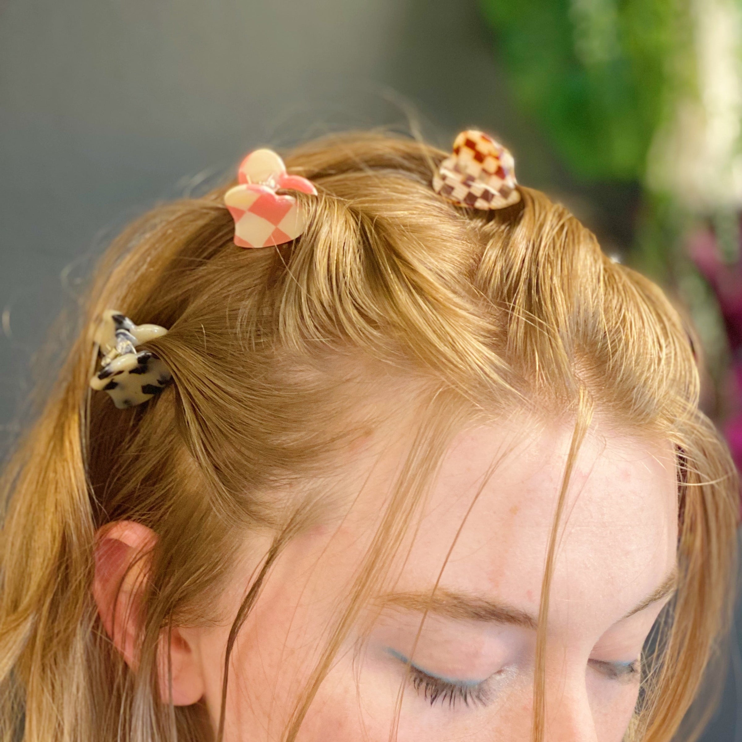 Precious mini size heart shape hair claw set! This set has 5 adorable mini clips carefully picked in classic and trendy mixture!