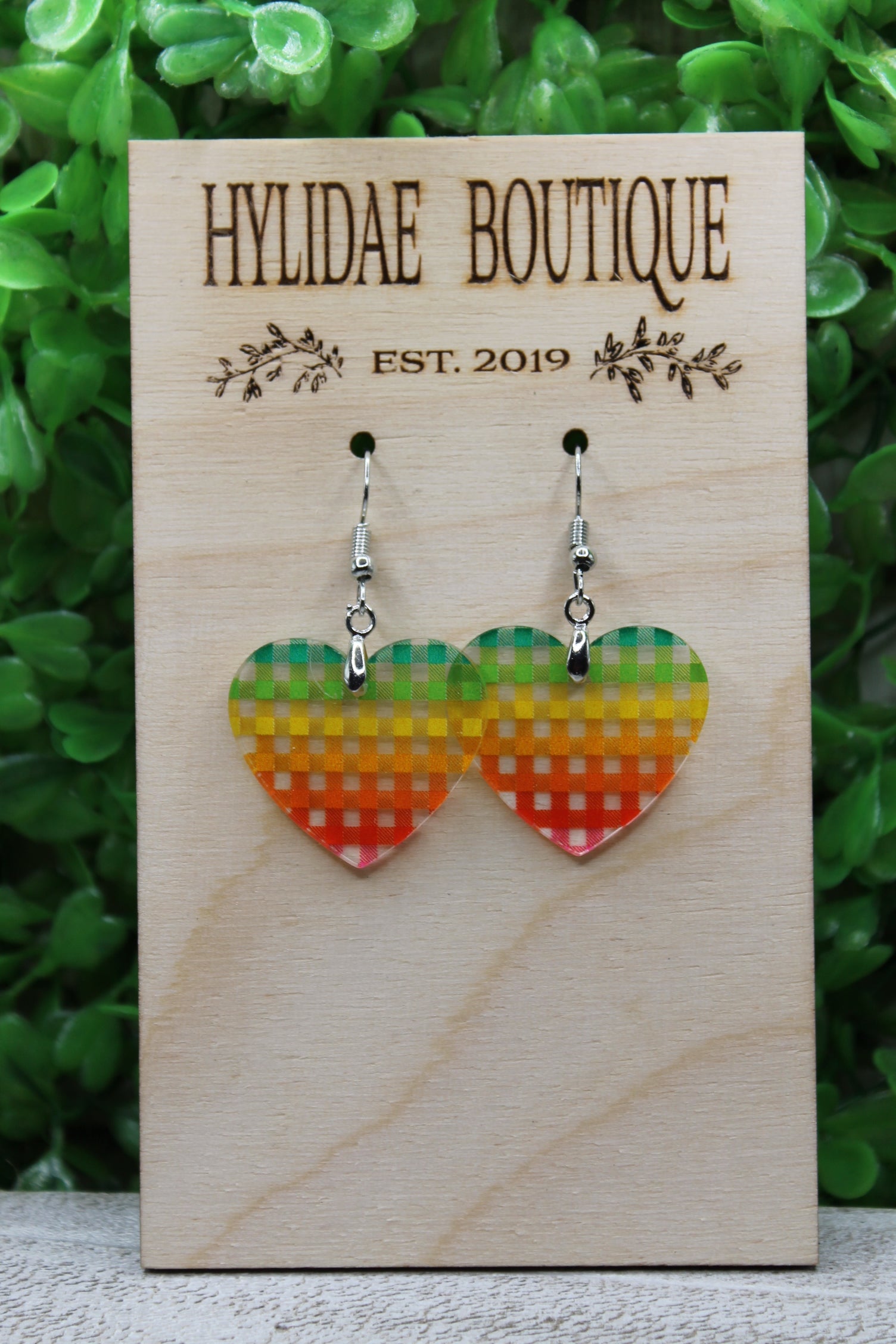 Rainbow Gingham Heart Dangle Earrings {Colors Vary Per Pair}