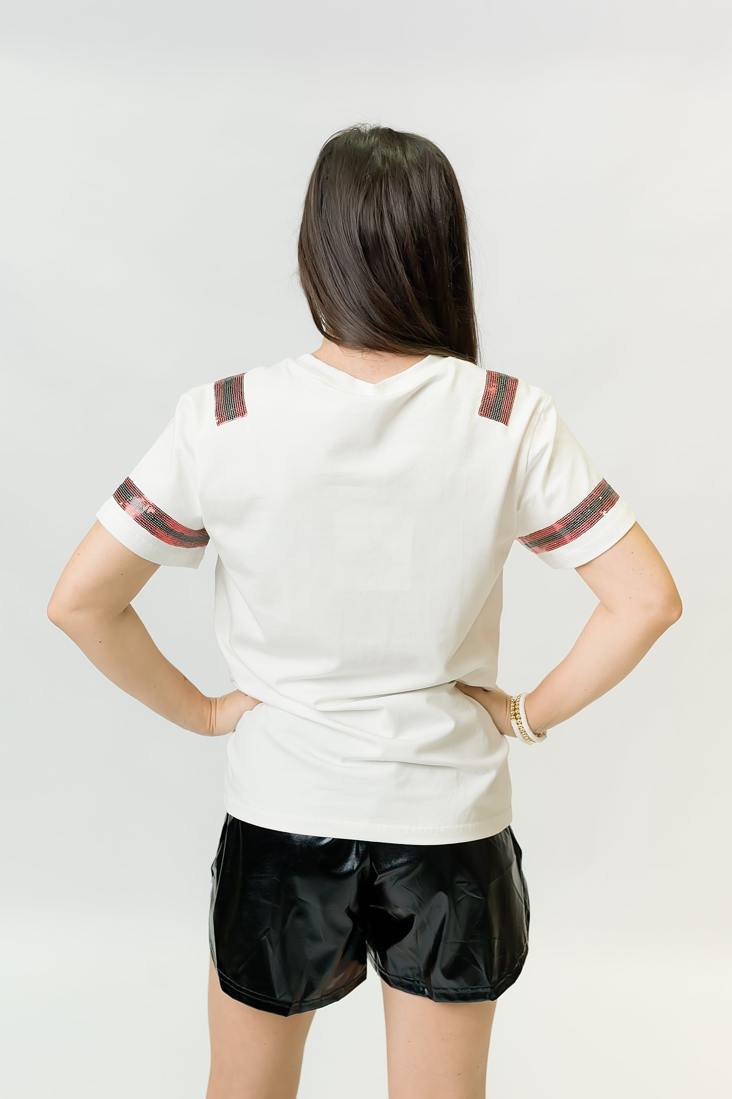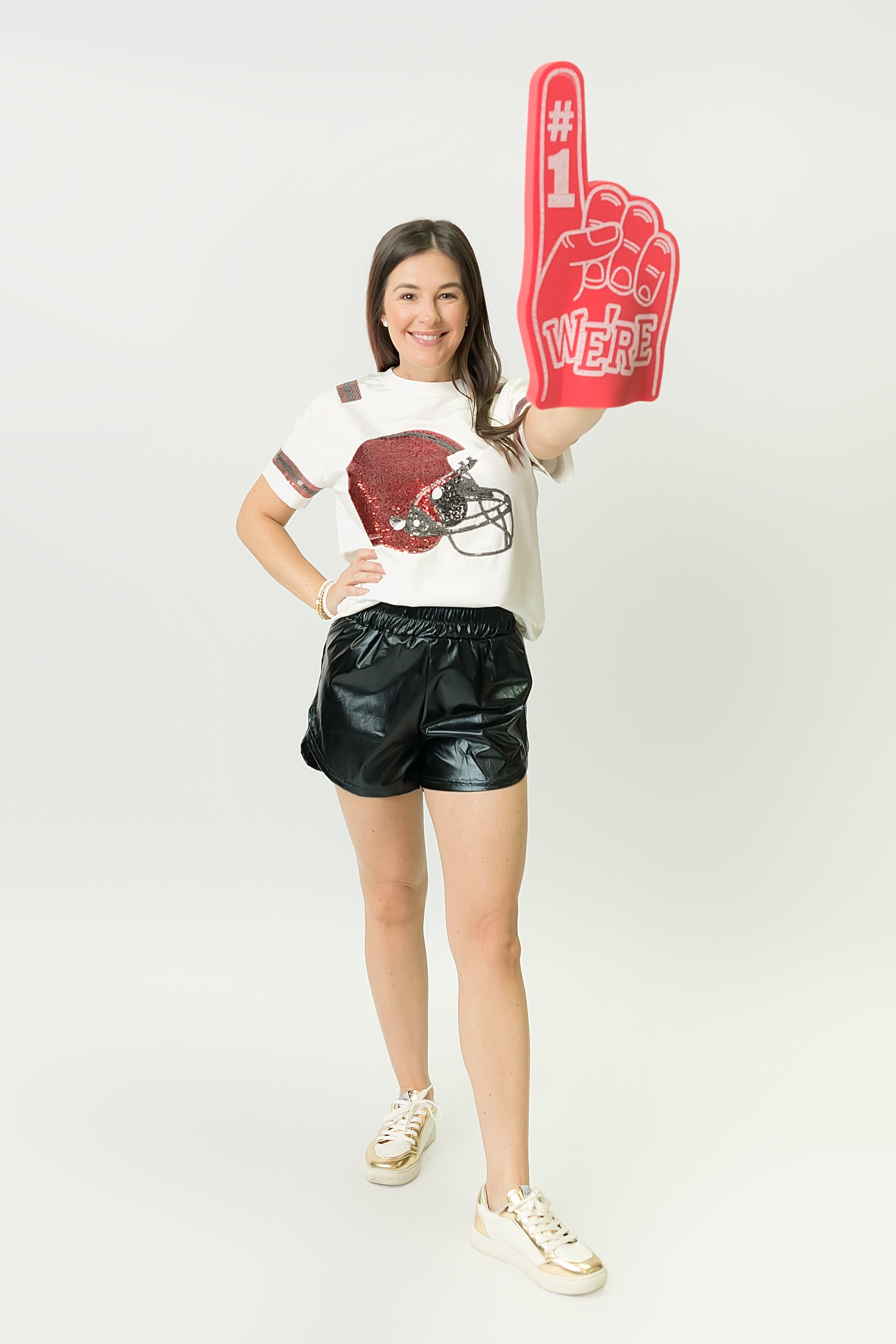 Turn heads with this Red and Black Helmet Sequin Shirt, where bold colors meet sparkling sequins for a fun, eye-catching look. Perfect for adding a playful twist to your outfit, this shirt shines with vibrant red and black sequins that catch the light with every move. Whether you're out with friends or hitting a party, this shirt brings energy and sparkle to your style.