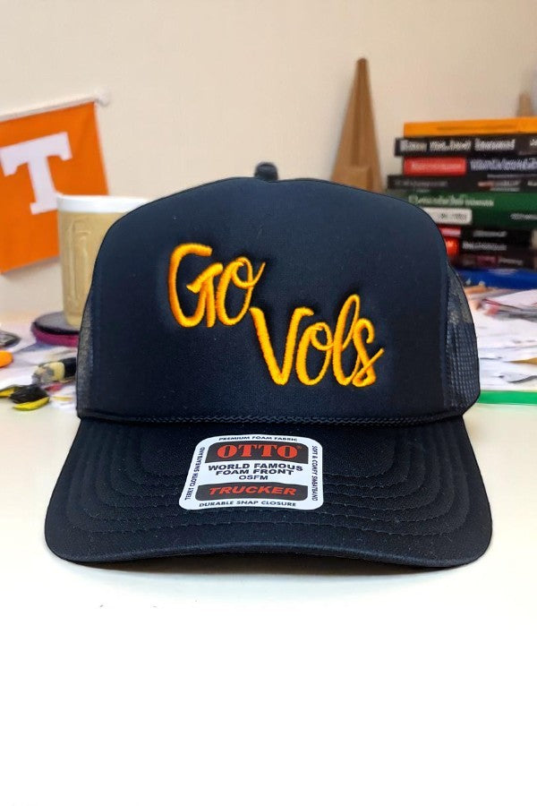 Unleash your inner Vol with this black trucker hat, featuring an orange embroidered Go Vols across the front. Show your team spirit while staying cool and stylish. Game day just got a whole lot better!