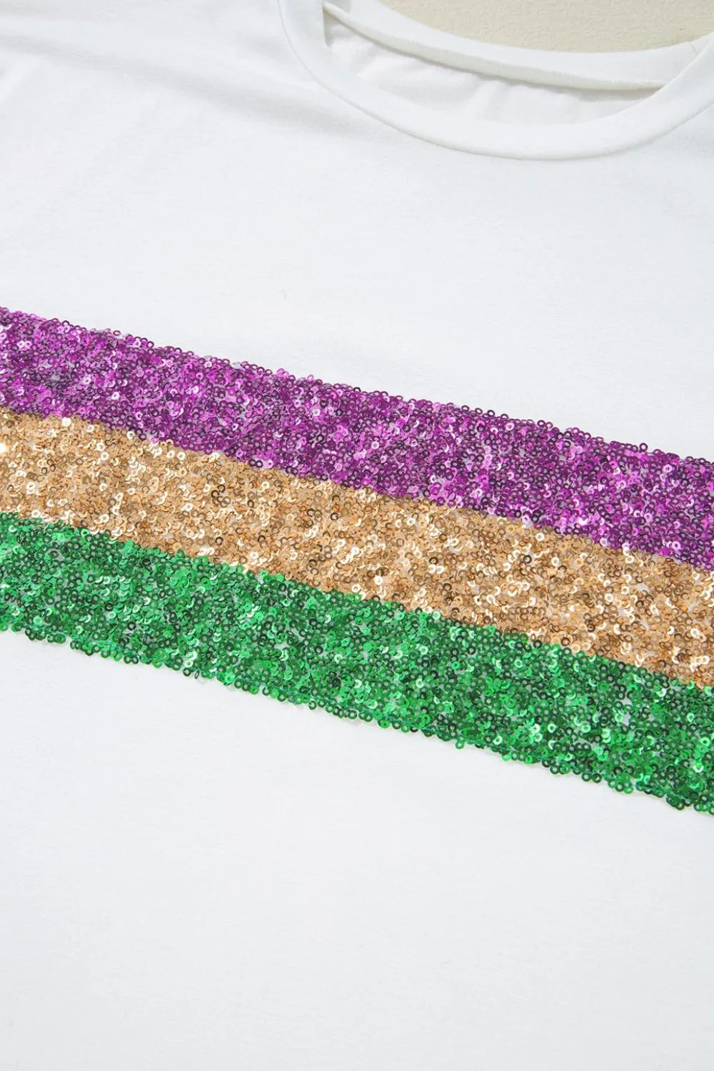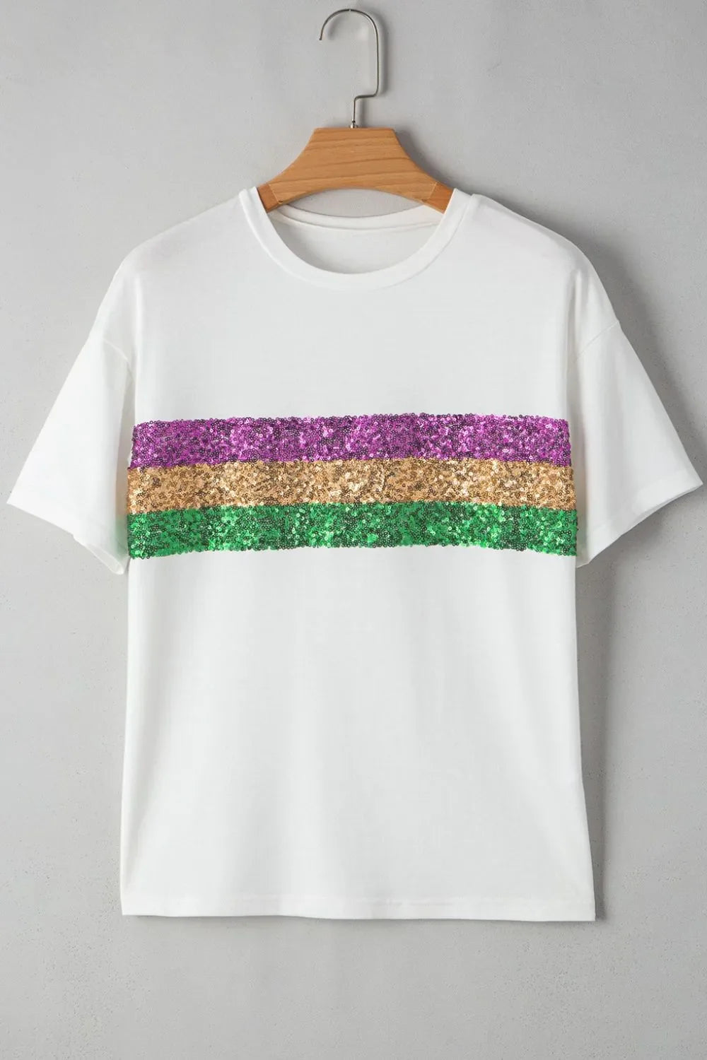 Sequin Stripes Crew Neck T Shirt