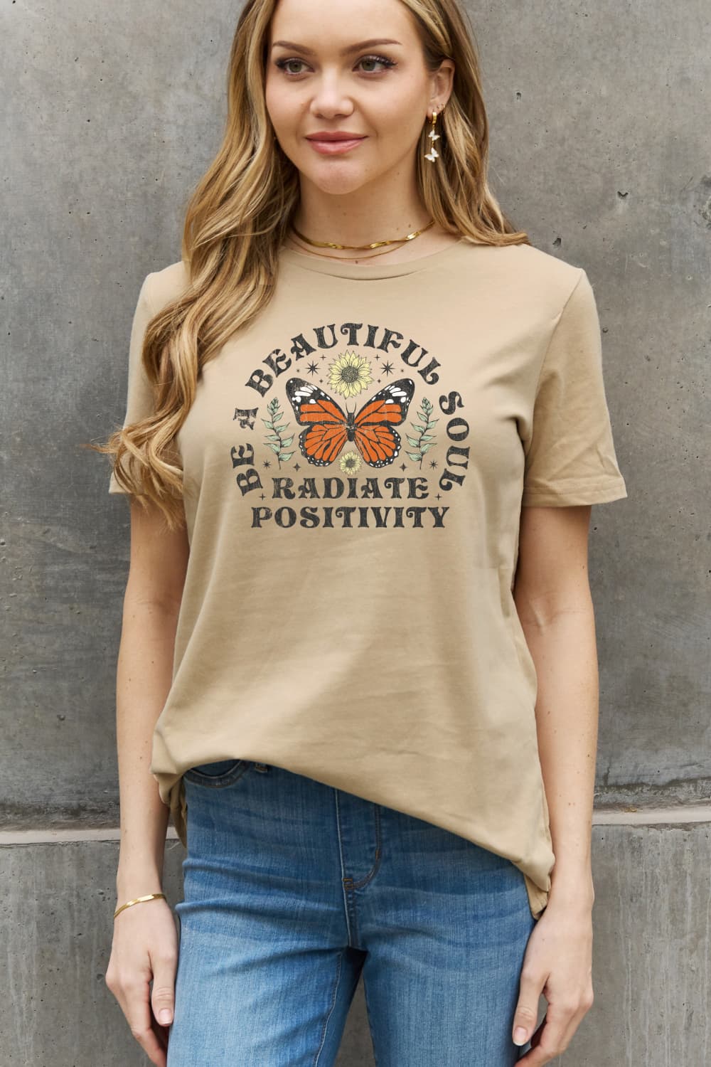 Simply Love Full Size BE A BEAUTIFUL SOUL RADIATE POSITIVITY Graphic Cotton Tee