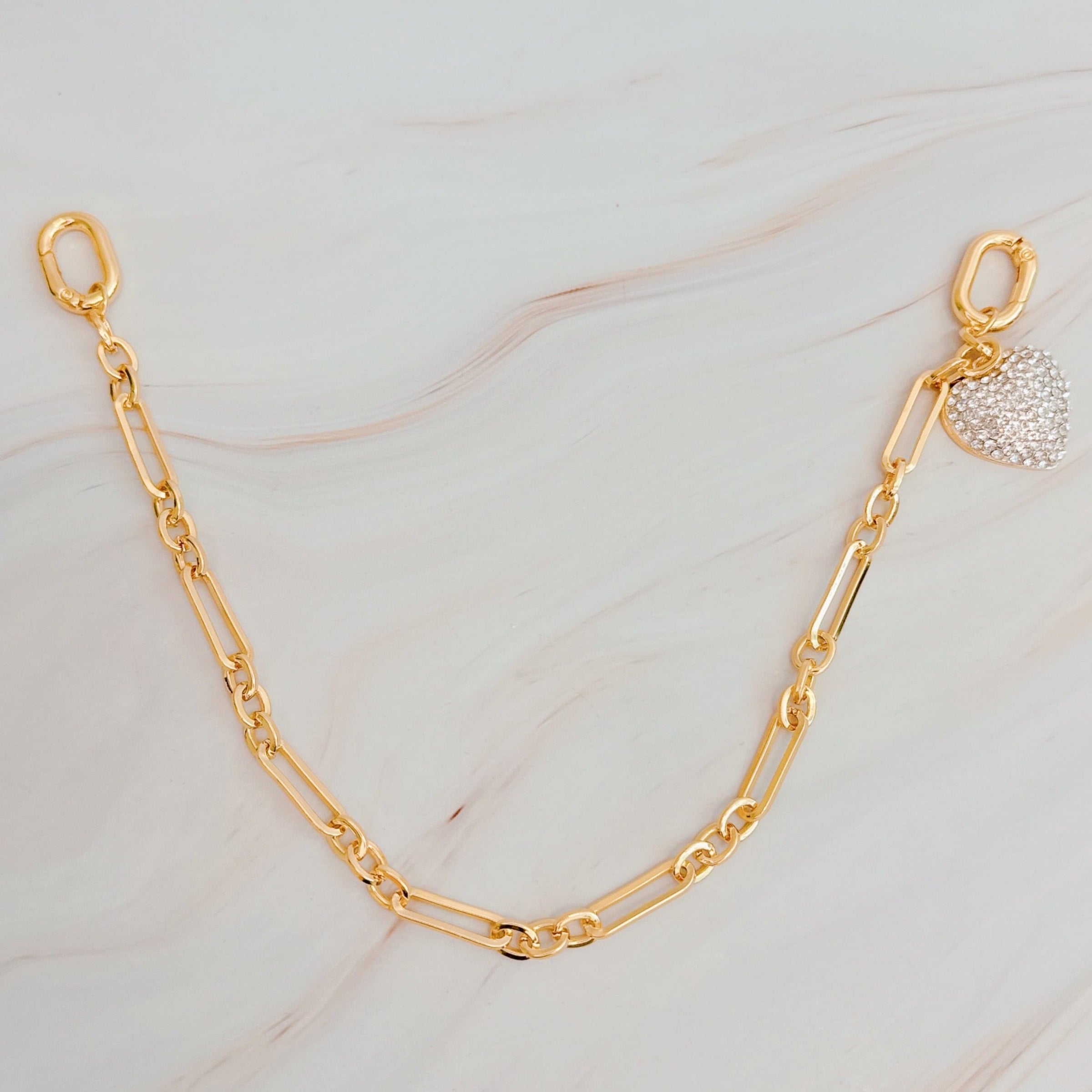 This sparkly bracelet features a trendy heart design on a modern chain, perfect for adding a touch of romantic glam to any outfit. Exuding a lovely charm, this bracelet is a must-have.