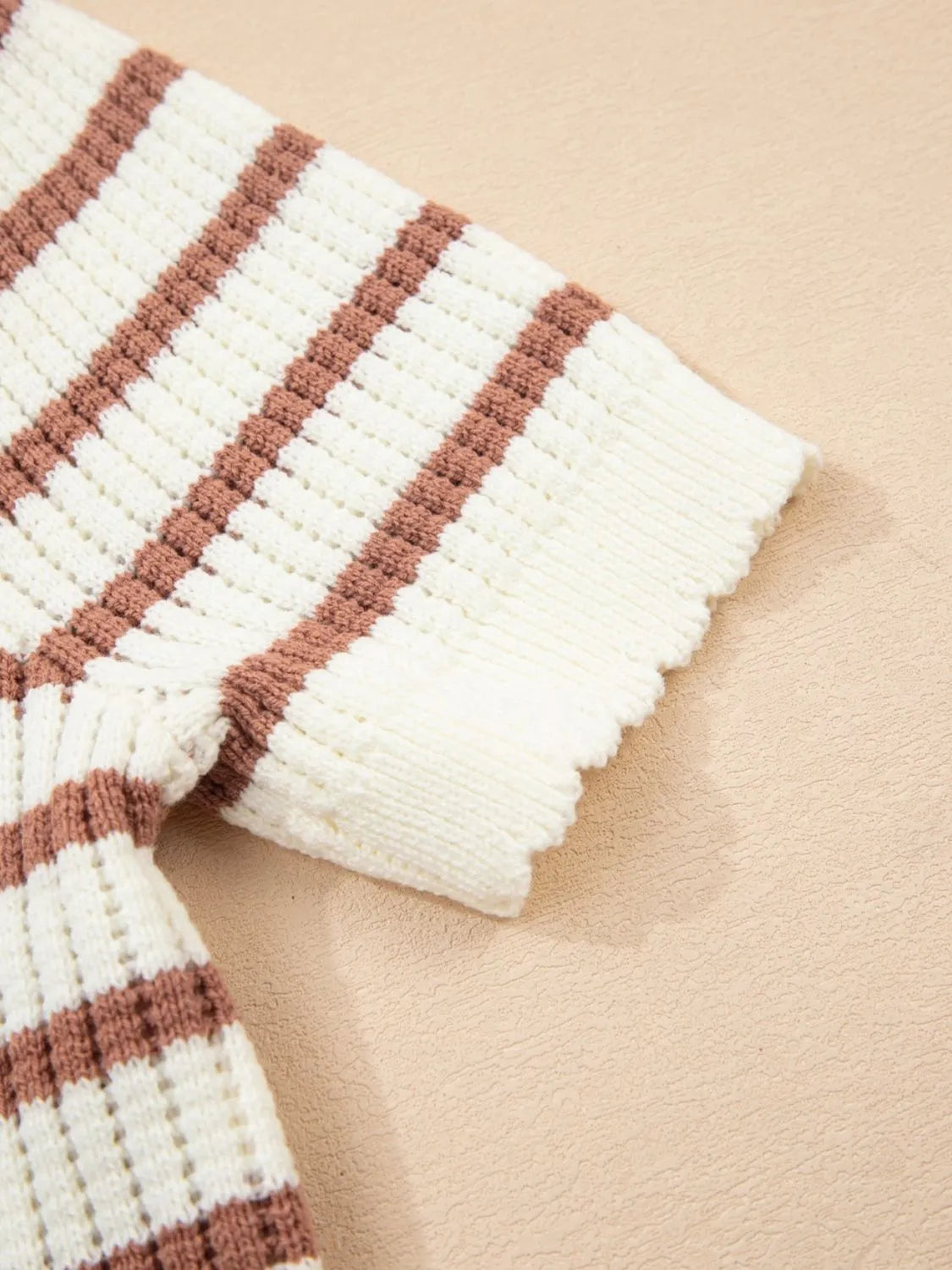 Stripe Scalloped Round Neck Short Sleeve Sweater