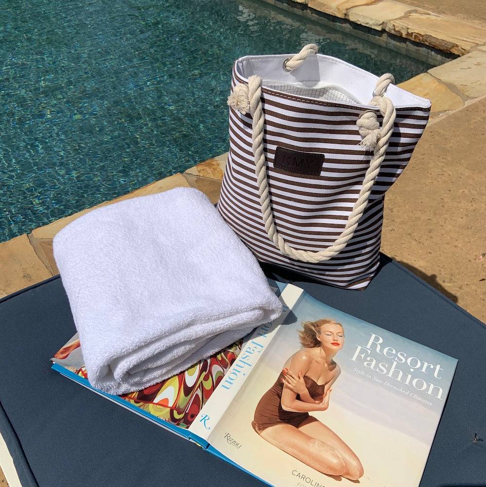 This striped tote bag is a chic way to keep all your essentials right at your fingertips. This trendy handbag is large enough to accommodate your cell phone, wallet, makeup, and toiletries with plenty of space left for your tablet or even a small laptop.