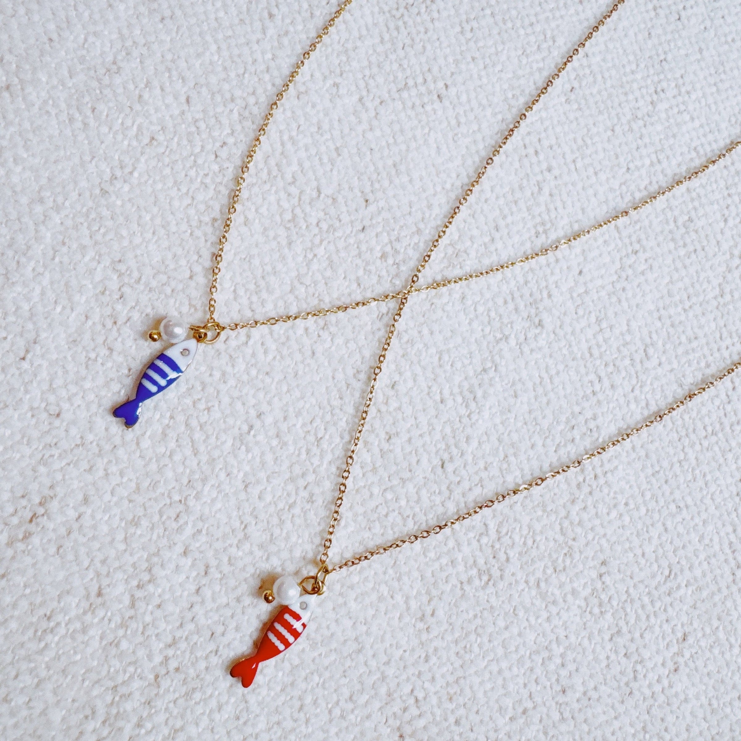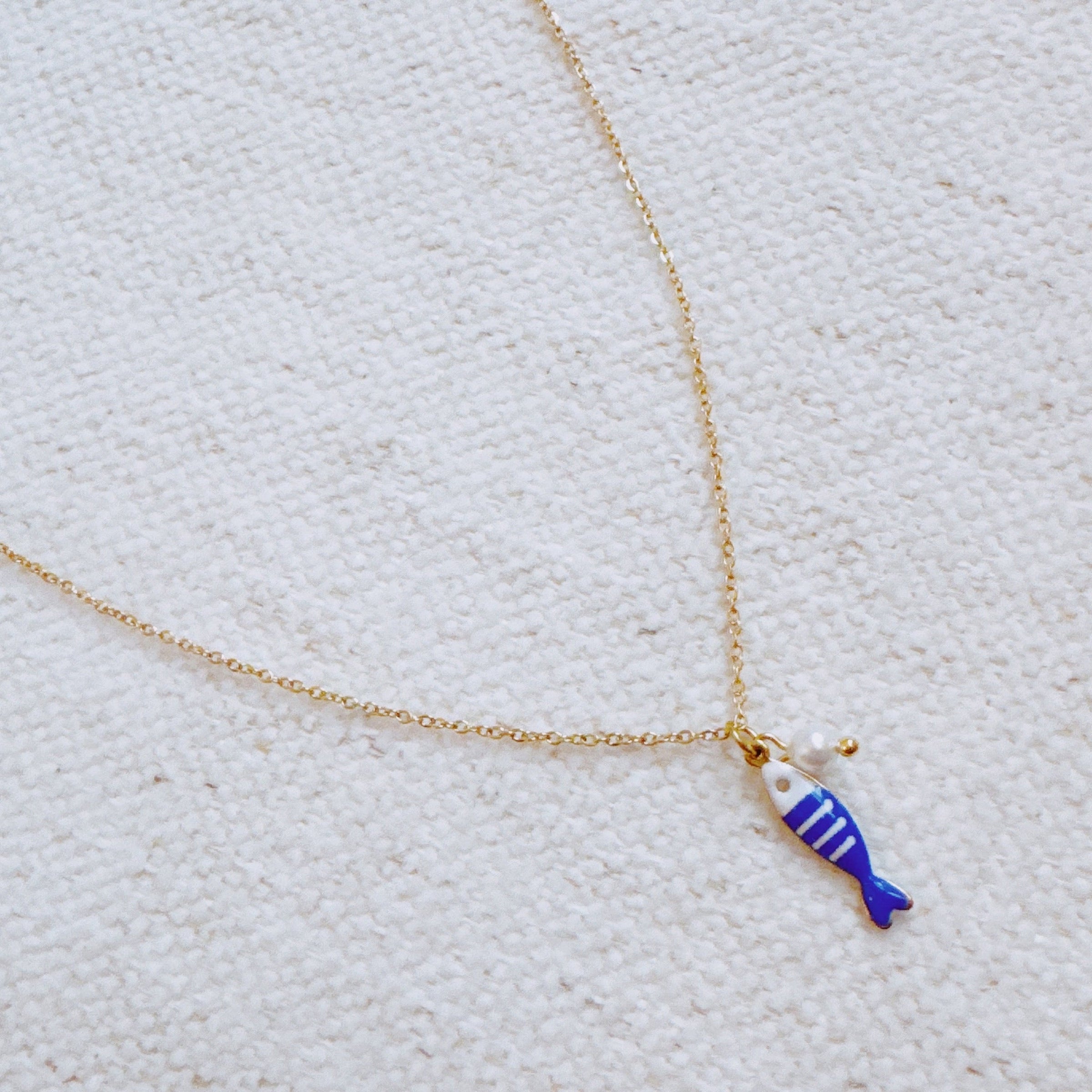 Striped Fish & Pearl Necklace – Nautical, Cute Style