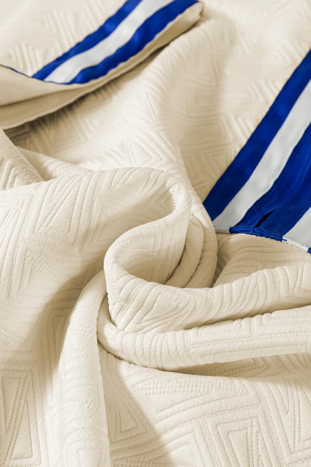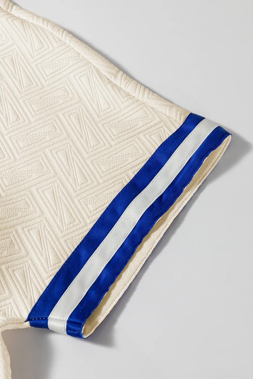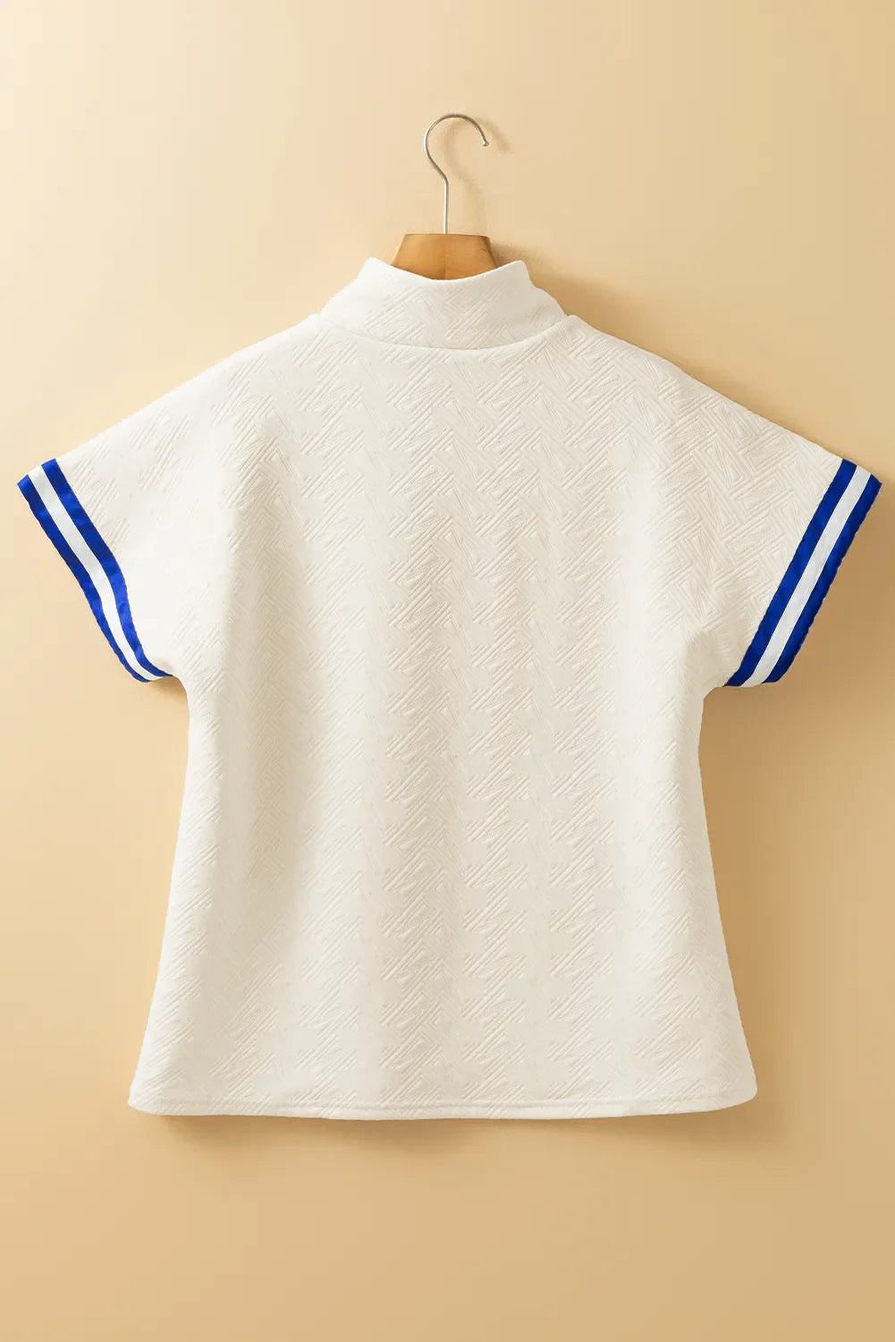 Striped Trim Textured Quarter Zipper Short Sleeve Top