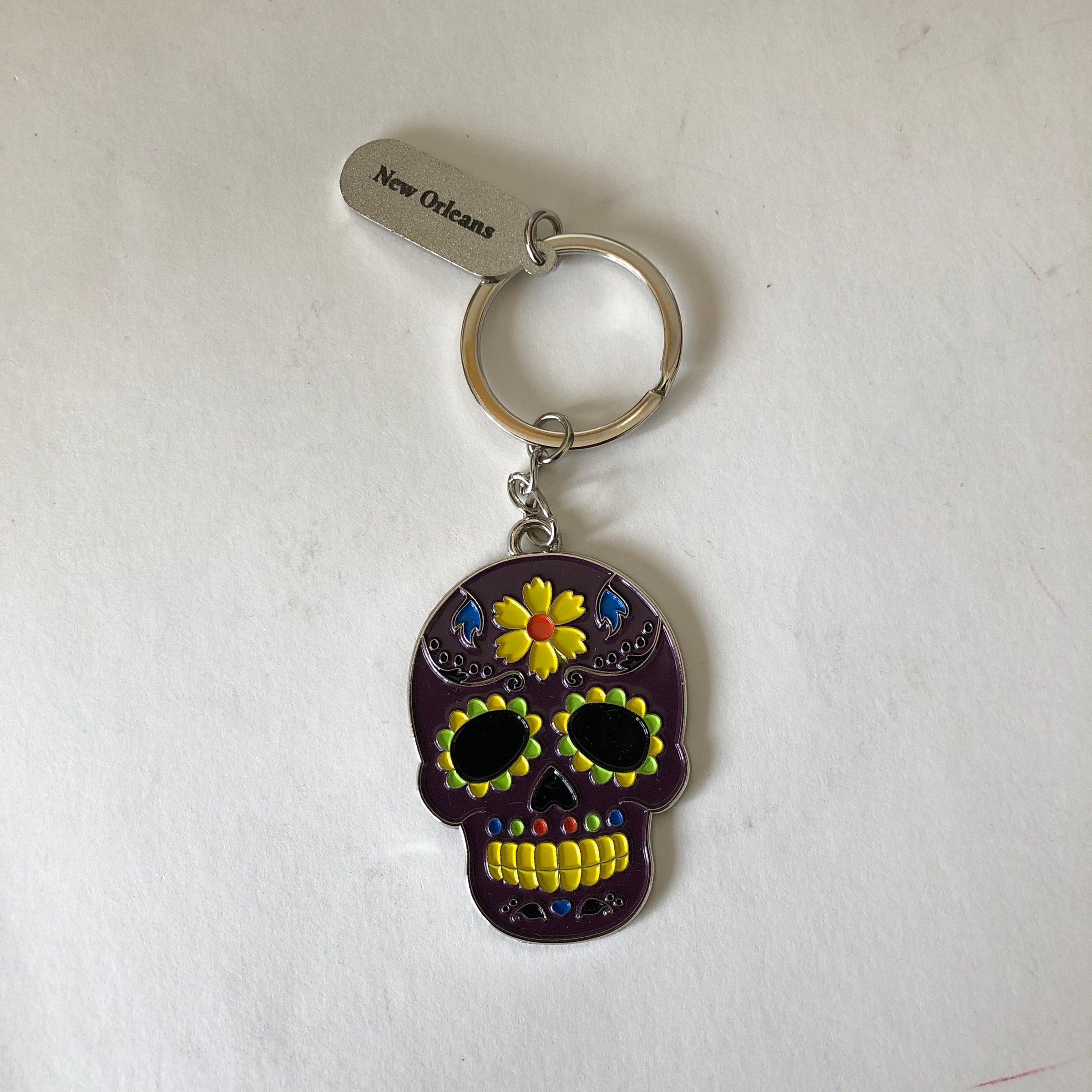 This is the perfect souvenir! It's a sugar skull keychain that comes in 4 different colors (black, green, red, and orange).